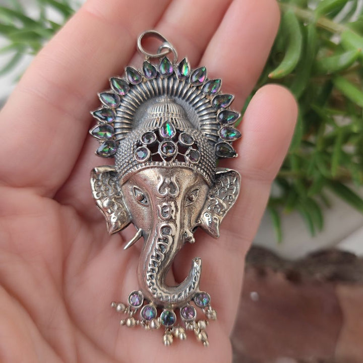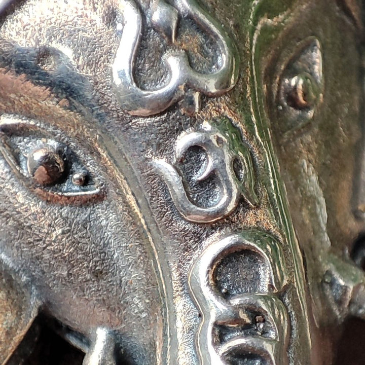 Un ciondolo tradizionale ricco di fascino e la spiritualità realizzato in argento indiano, un gioiello che unisce tradizione e arte in un unico, straordinario pezzo. Questo ciondolo, realizzato con maestria artigianale è finemente lavorato su tutta la superficie.