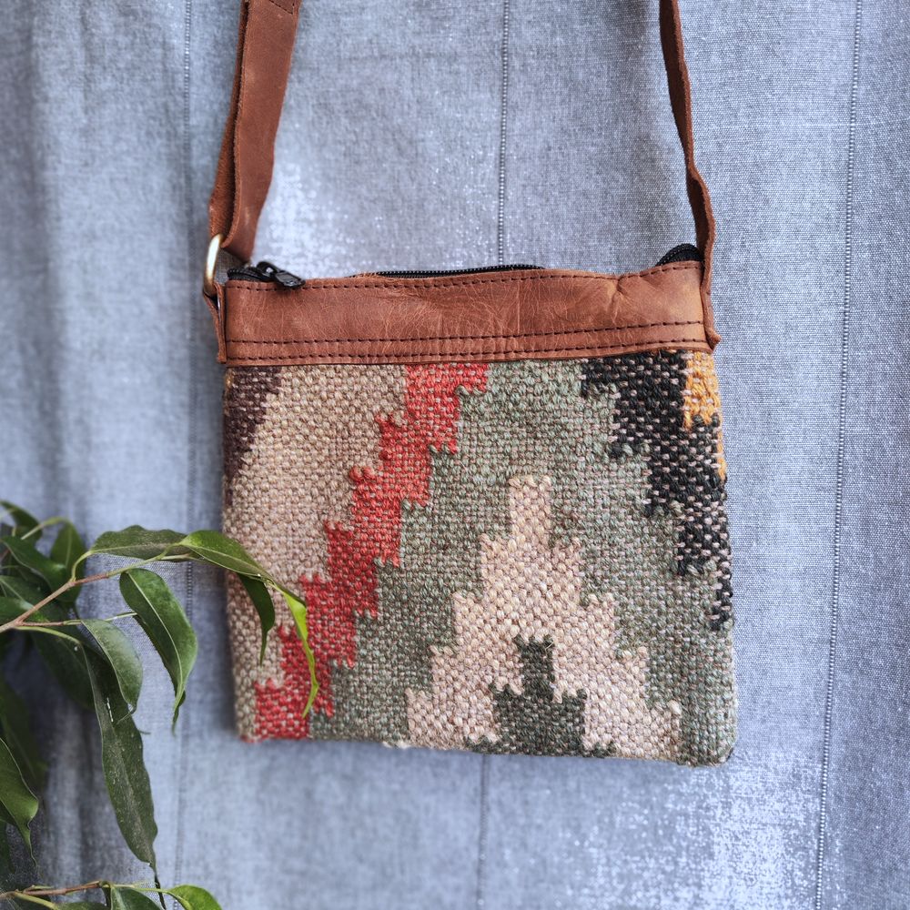 Borsa tracolla DEV artigianale realizzato con KILIM e Cuoio