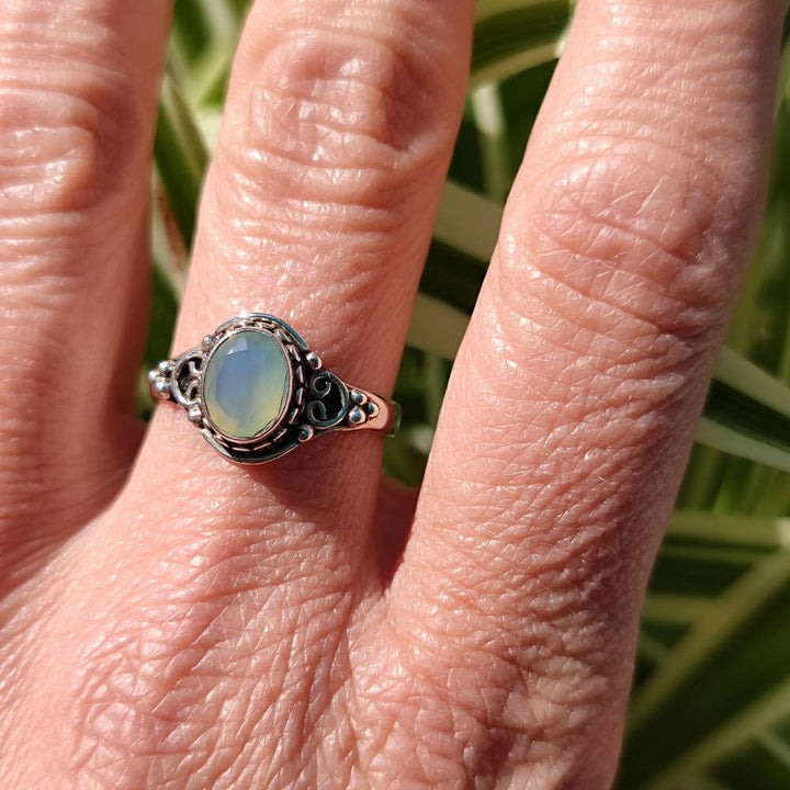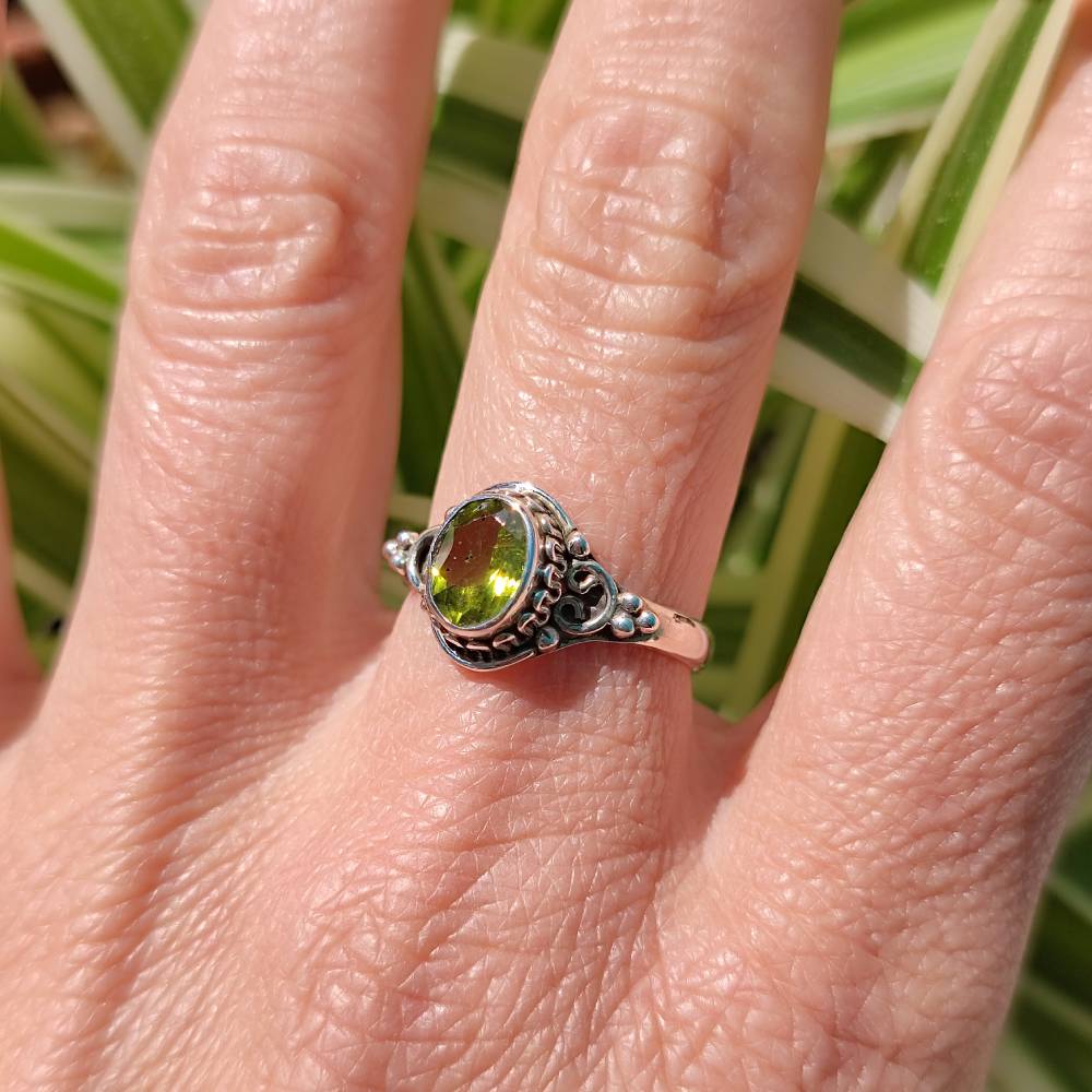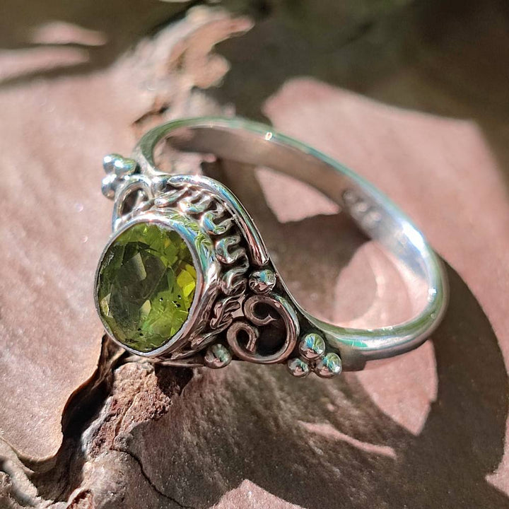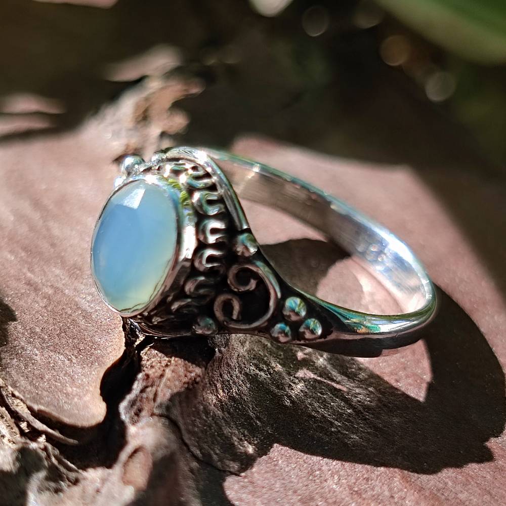 Anello con pietra in argento 925 - NIWARI. Questo artigianato è tipico dei gioielli del nord dell'India. Infatti come elementi ornamentali, realizzati uno per uno a mano, vengono usati non solo la puntinatura, i petali, i motivi floreali, ma anche le raffigurazioni di pavoni, elefanti, tigri e serpenti che sono parte integrante della gioielleria etnica indiana. L'anello è inoltre realizzato artigianalmente in argento 925