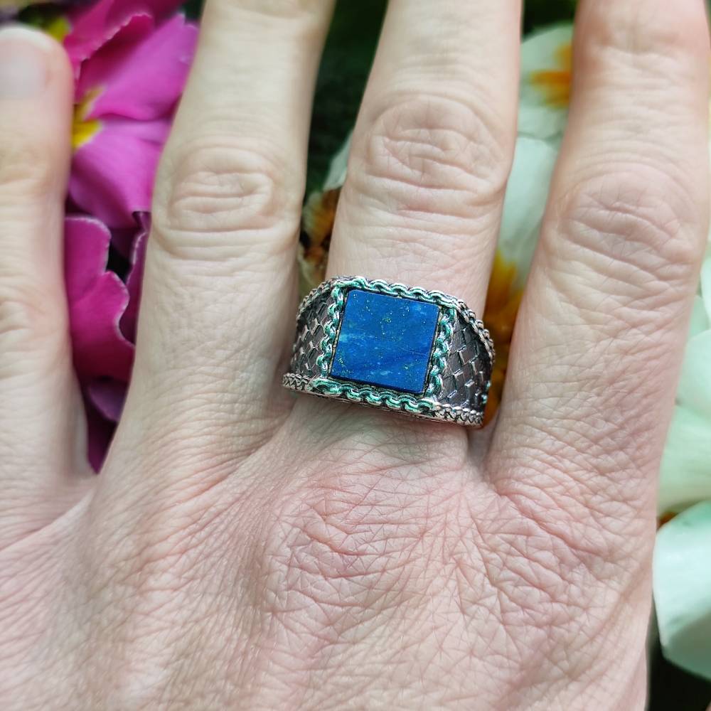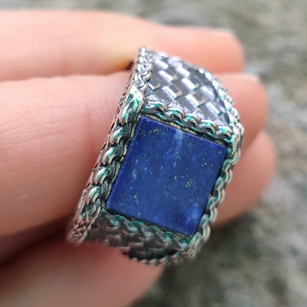 Anello etnico in argento 925 con Lapislazzuli - TAWARKI