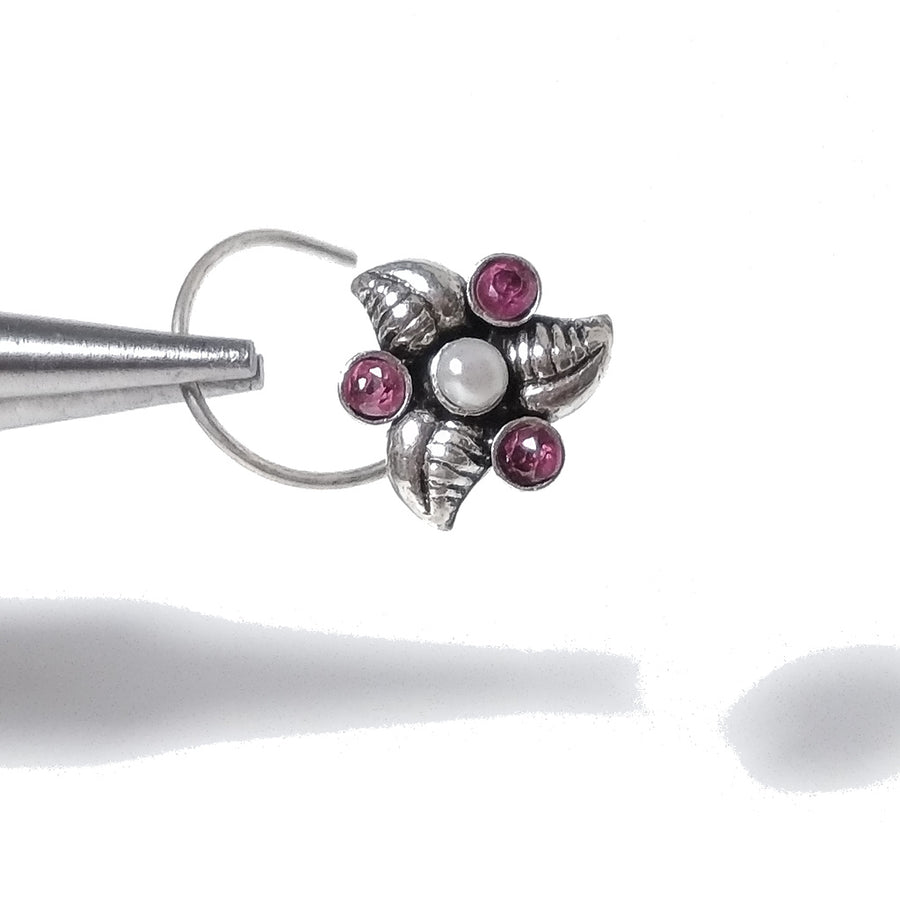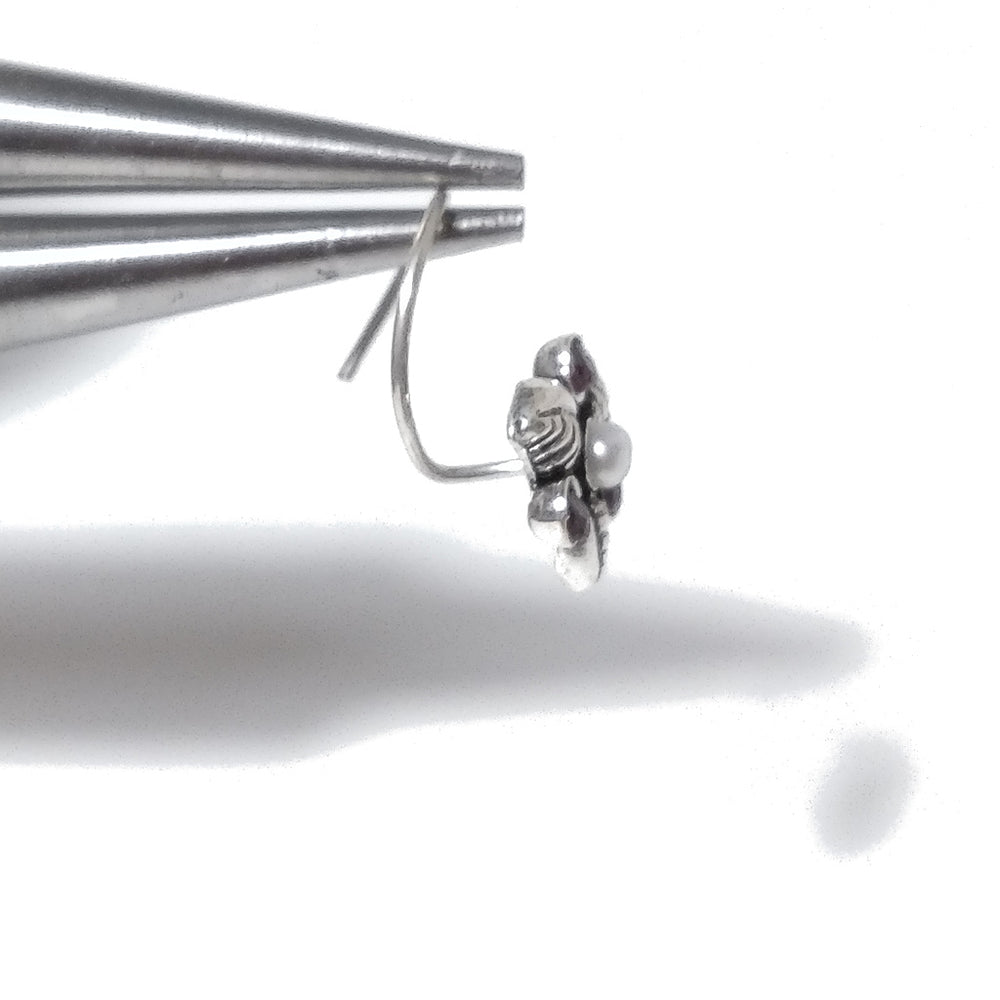 Orecchino da naso etnico in argento 925. Questi piercing tribali e originali sono realizzati con una lavorazione tipica usata in molte culture. Questi in particolare provengono dalle tribù Rabari che si trovano nelle regioni del Nord dell'India.