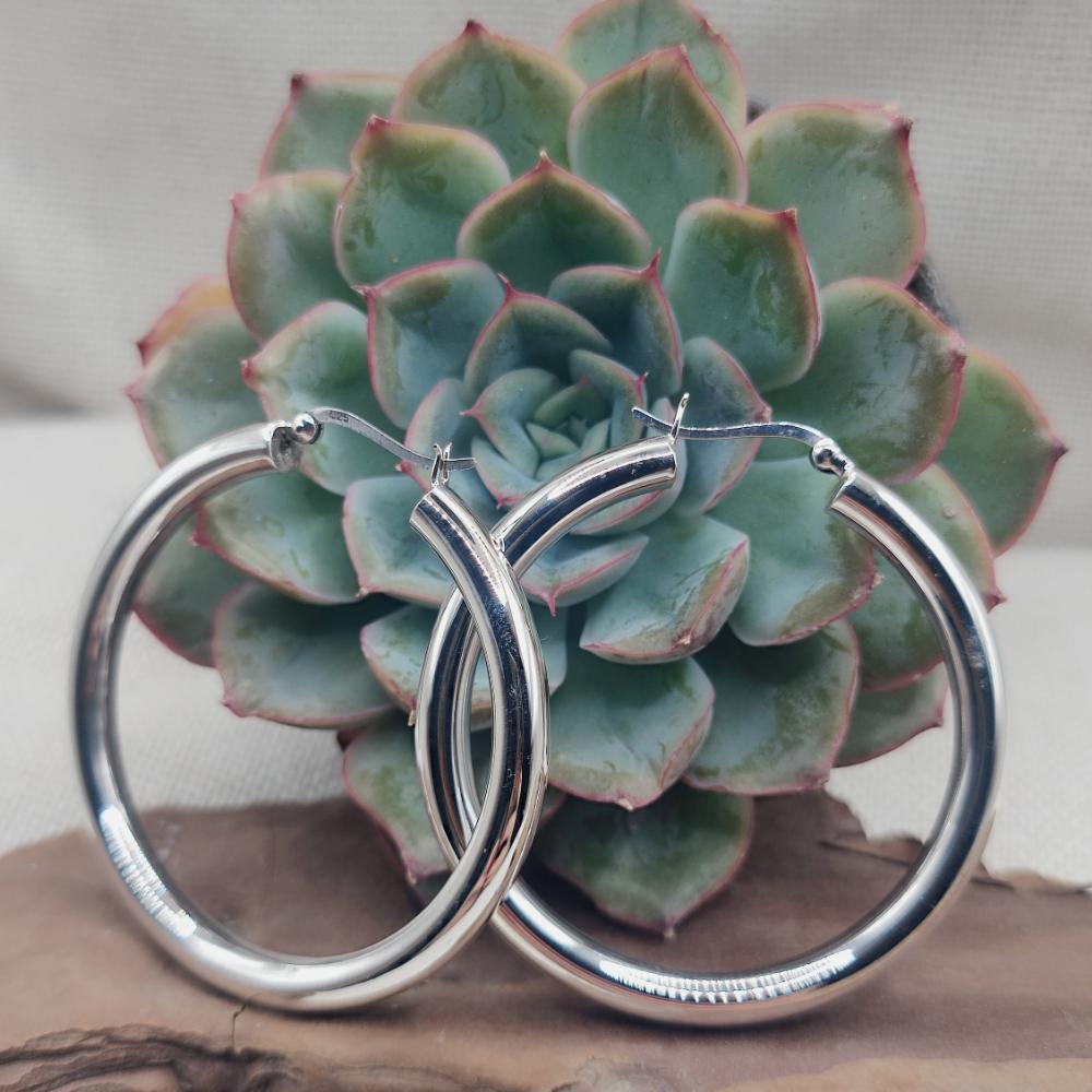 Orecchini a cerchio in argento 925 - PRANA. Un grande classico, ma con grande presenza: questi orecchini a cerchio in argento 925 hanno una linea morbida e bombata che cattura la luce a ogni movimento. Sono il tipo di gioiello che “fa subito look” senza bisogno di esagerare: essenziali, eleganti, perfetti per dare carattere anche a un outfit semplice.