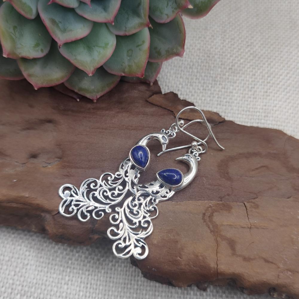 Orecchini con pavone in argento 925 lapislazzuli - NEERJA