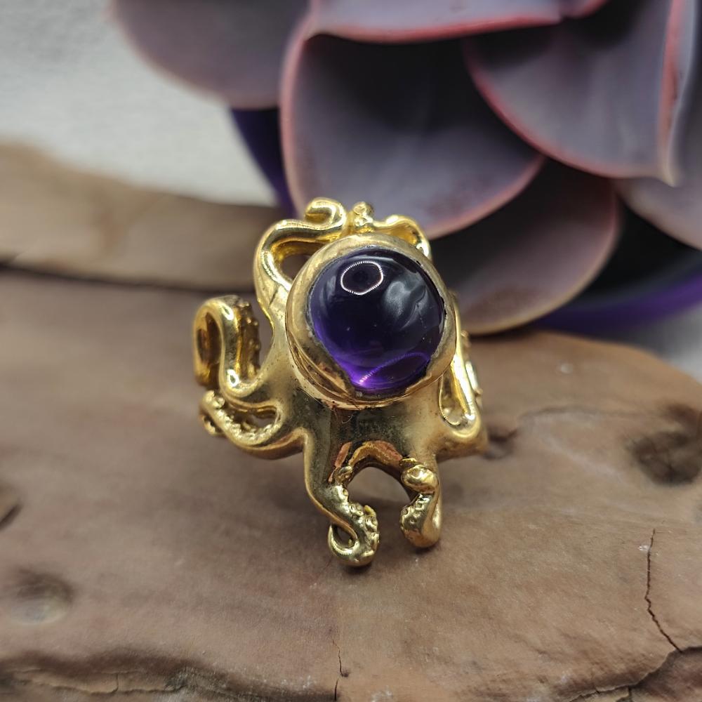 Messing-Oktopusring mit Amethyst - ISHANI