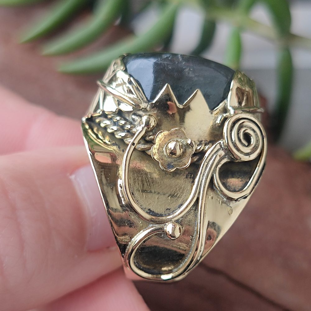 Anello fascia ARI in ottone ANELLO artigianale con pietra | ANELLI artigianali