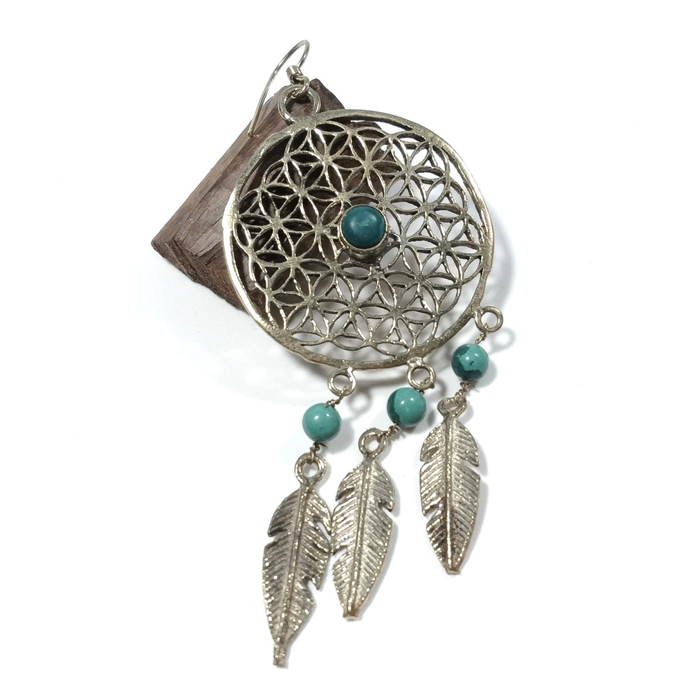 ETHNISCHE OHRRINGE Poliertes Messing Malachit OHRRINGE | Blume des Lebens