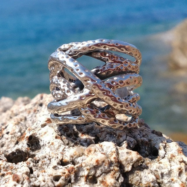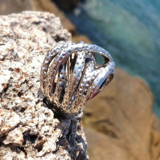 Der Ring besteht aus hypoallergenem 925er Silber. Seine Oberfläche ist nicht behandelt oder plattiert, daher ist seine Schönheit über die Jahre hinweg garantiert.