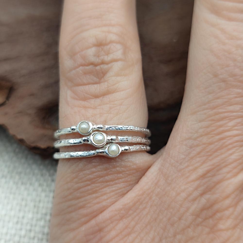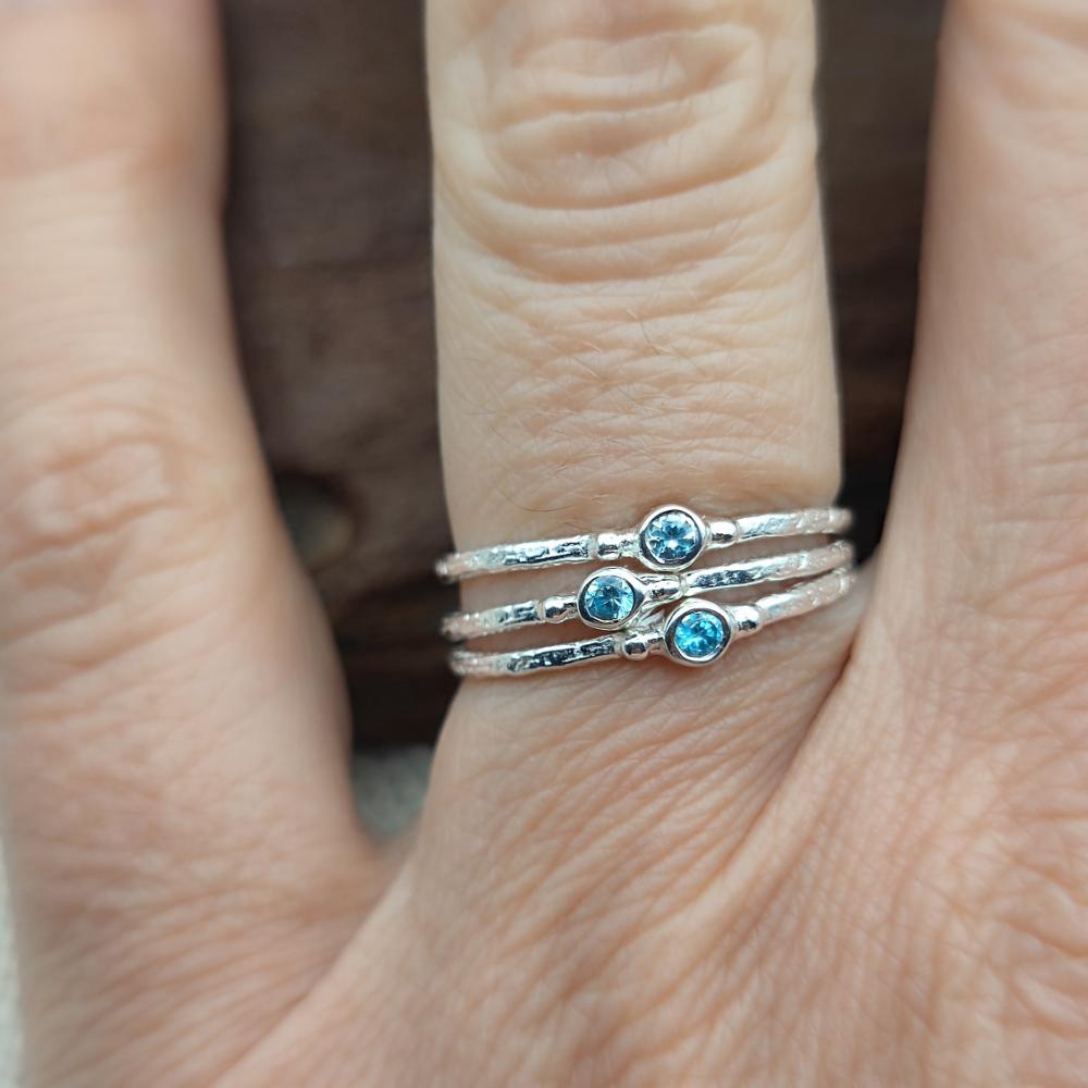 Dreifachring aus 925er Silber mit schmalem Band und Stein – SOILE. Dieser Ring, bestehend aus drei schmalen, gehämmerten Bändern, vereint elegantes Design und italienische Handwerkskunst. Er ist handgefertigt und ein Unikat, das das Licht einfängt und jede Geste durch die Brillanz seiner Natursteine unterstreicht.