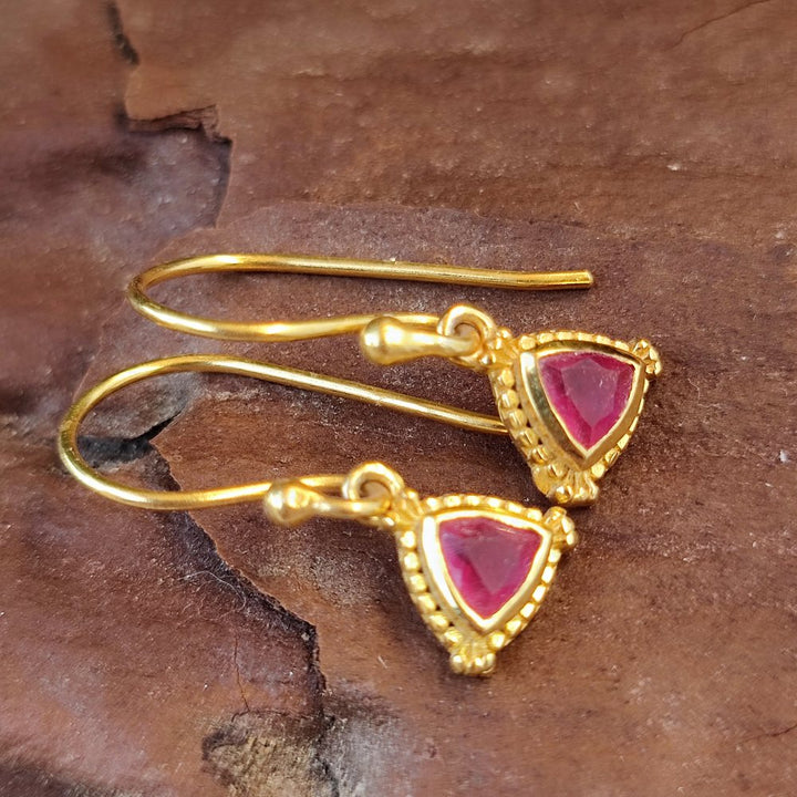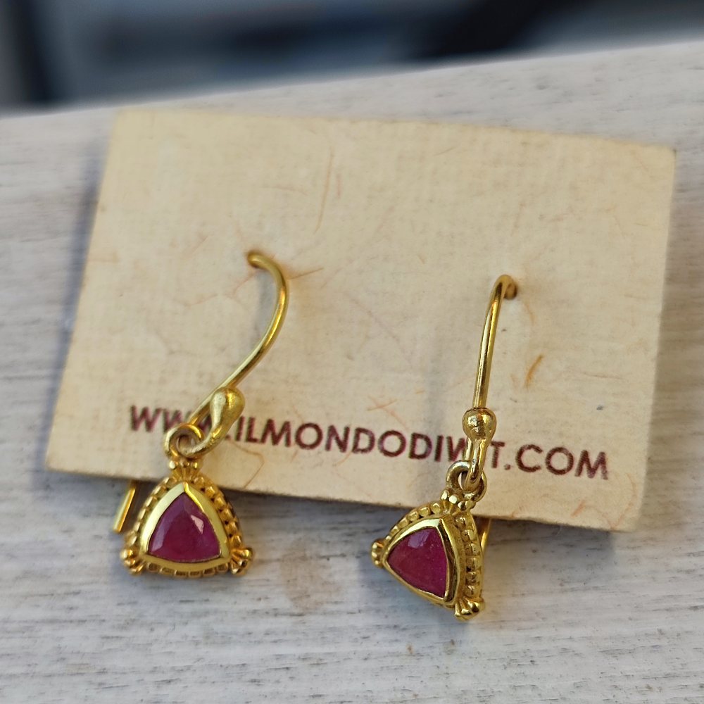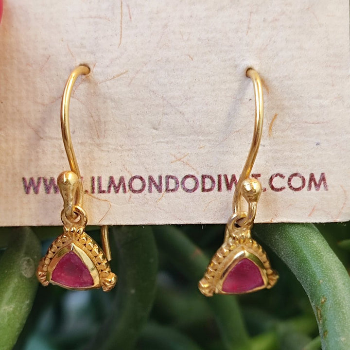 Goldene 925er Silberohrringe mit Stein - DULLAHANDA. Goldene, silberne Creolen, handgefertigt mit Rubellit- Stein.