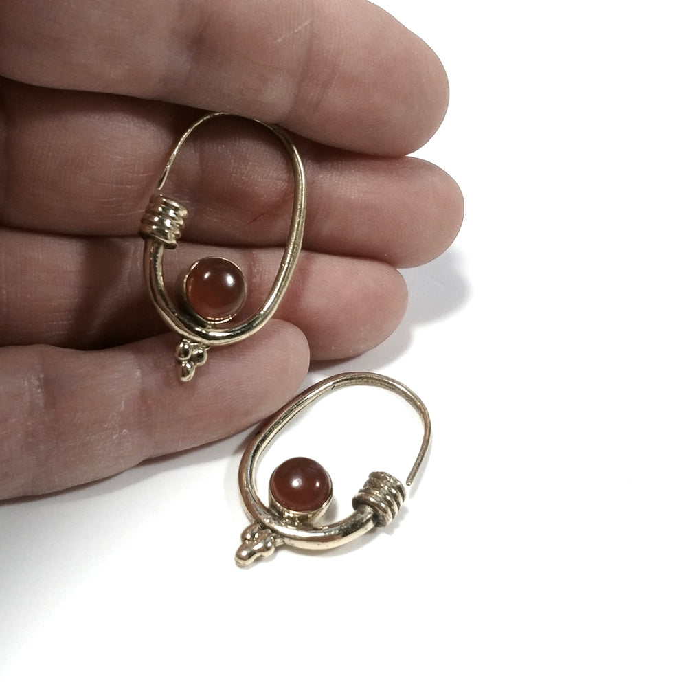 ETHNISCHE OHRRINGE Karneol-OHRRINGE aus poliertem Messing