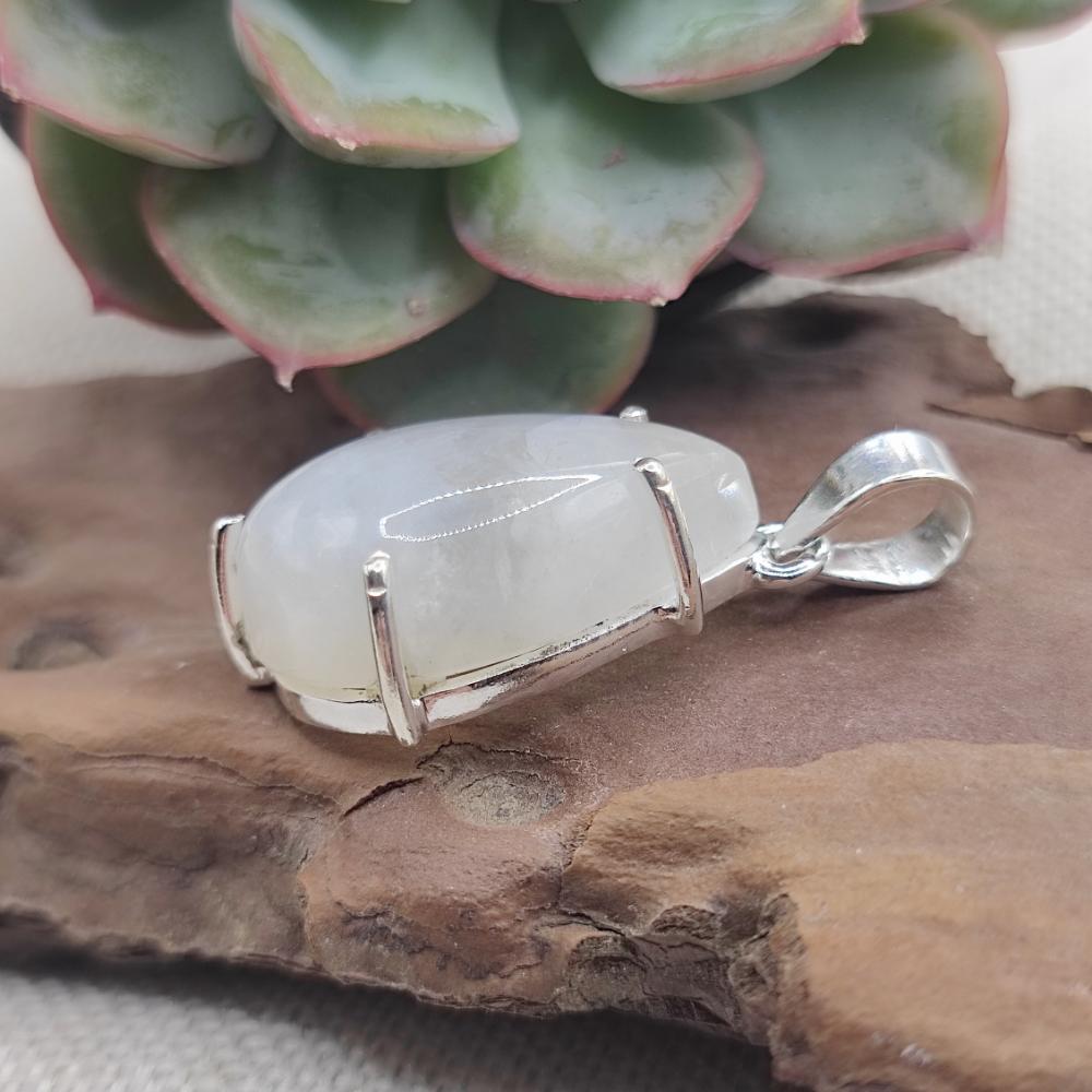 Verleihen Sie Ihrem Stil einen Hauch von Eleganz und Geheimnis mit diesem Mondsteinanhänger aus 925er Silber – ein Schmuckstück, das seiner Trägerin Ruhe und Schönheit schenkt.