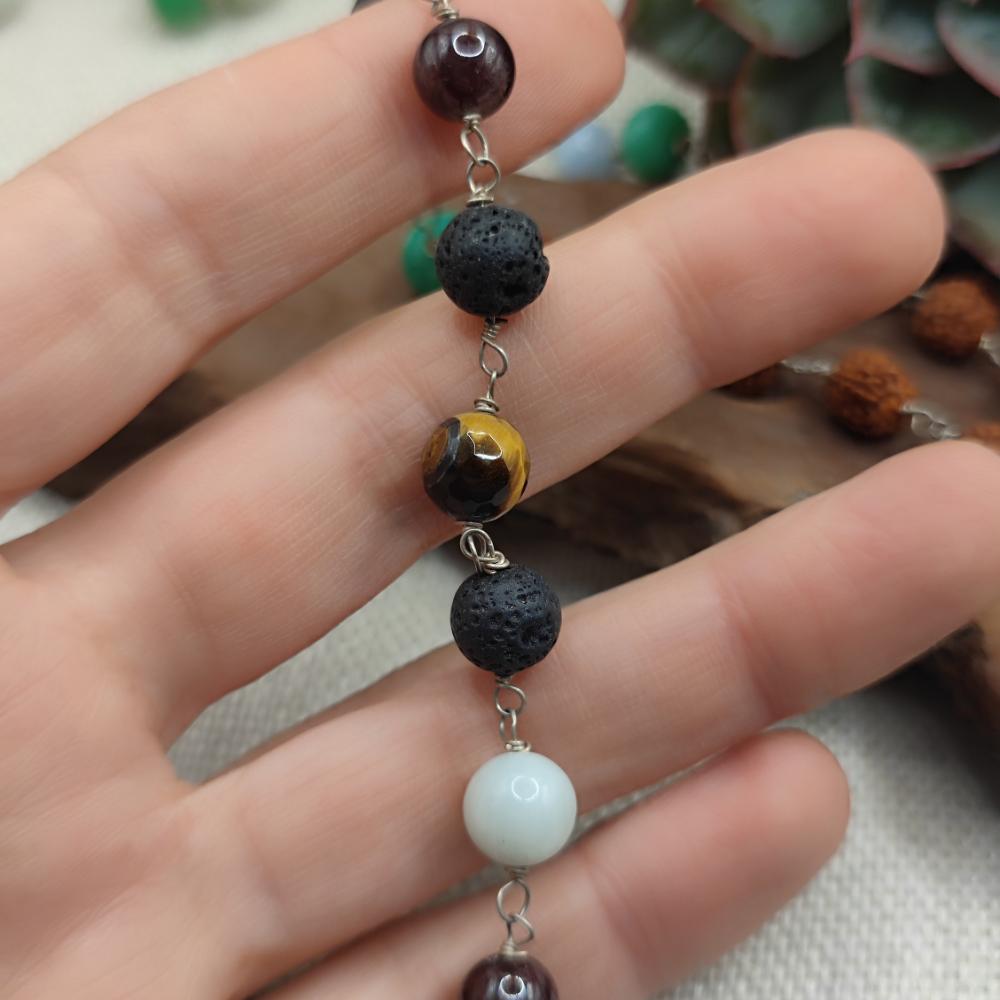 Handgefertigte Halskette aus 925er Silber mit mehreren Steinen - MAHANADI