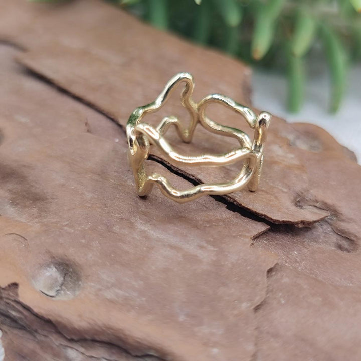 This ring is made up of two silhouettes of the island of Elba that are joined on the right side (Lato Cavo/Porto Azzurro) in its upper part. From size 19 onwards the ring is made with 3 silhouettes of the island.