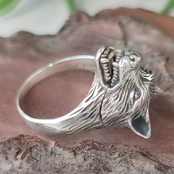 925 Silver Openable Ring with Wolf - WOLF. An openable ring, a powerful and wild handcrafted jewel. An ideal gift for men and women.