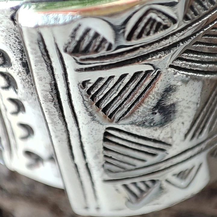 The Tuareg silver ring is a jewel with a strong symbolic and cultural value, handmade according to the ancient tradition of the nomadic peoples of the Sahara desert. This ethnic ring is characterized by geometric engravings typical of Tuareg craftsmanship. These jewels tell ancient stories and symbolize protection, strength and identity.