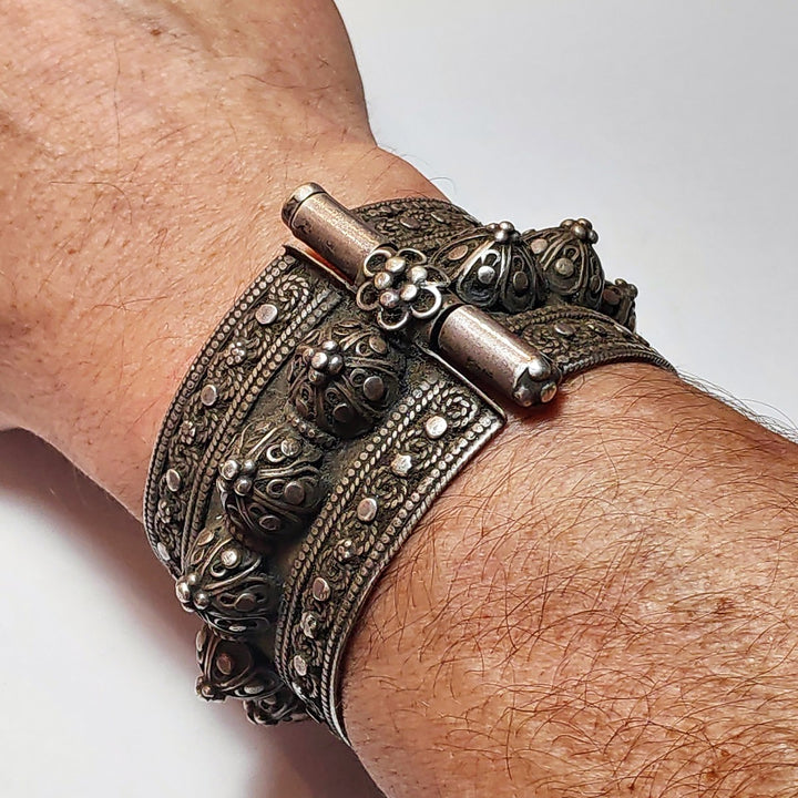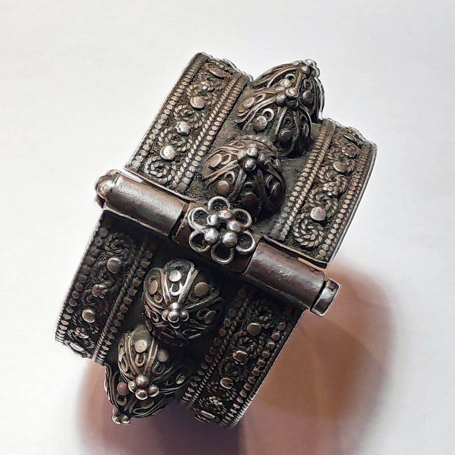 Collectible silver ETHNIC BRACELET. The bracelet suitable for men or women is made of 925 silver and comes from Rajasthan (North India). The bracelet is worked in filigree and plate.