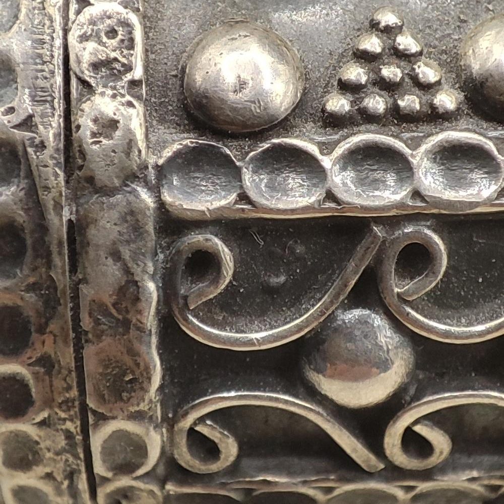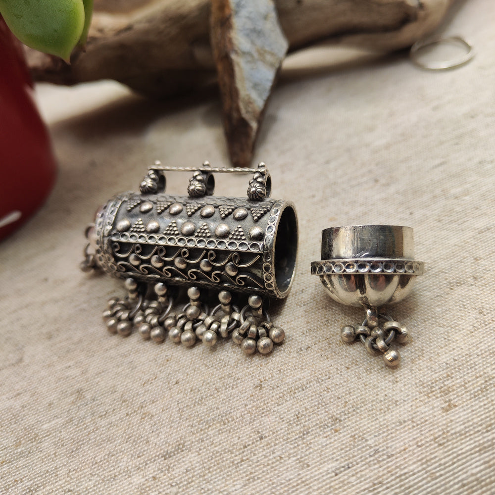 The ethnic design, inspired by traditional prayer cylinders, traditionally holds small messages, wishes, or motivational phrases. This detail makes this accessory not just a piece of jewelry, but a true personal talisman. The hand-crafted engravings lend character and authenticity, making each piece unique and perfect for those who appreciate symbolic and profound objects.