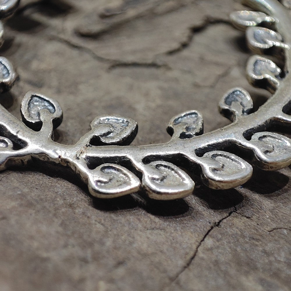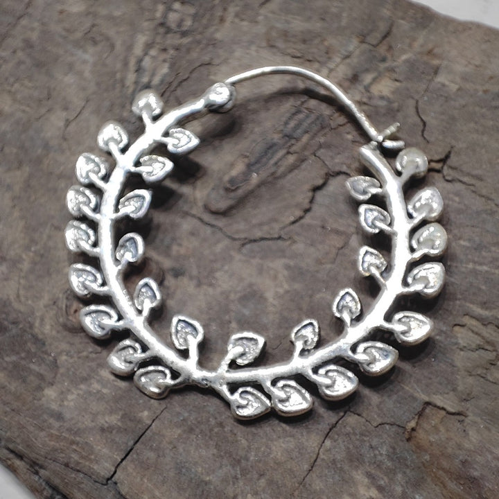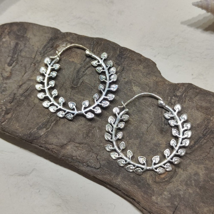 925 silver hoop earrings - RUA. Indian silver hoop earrings decorated with leaves are a type of traditional jewelry from India. These earrings are made of silver and have a circular shape, representing the classic hoop earrings.