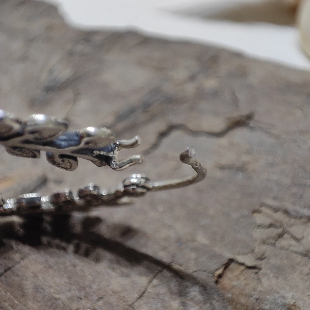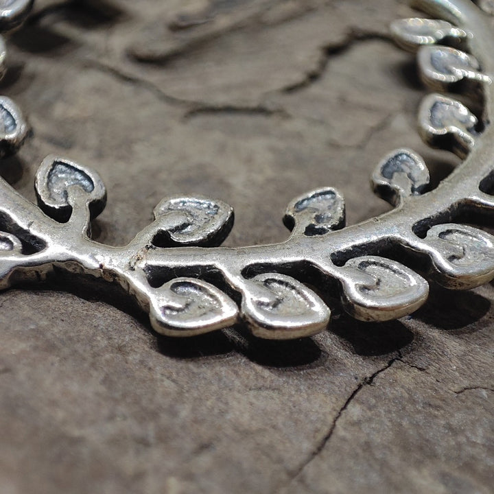 However, what makes them unique is the leaf decoration. The leaves create a detailed and charming decorative pattern. This design recalls elements of nature, symbolizing the vitality and beauty of leaves. Indian silver hoop earrings decorated with leaves are very popular and often used as an accessory to add a touch of elegance and originality to any outfit. They make a great gift for ethnic jewelry lovers and those who appreciate the traditional craftsmanship of India.