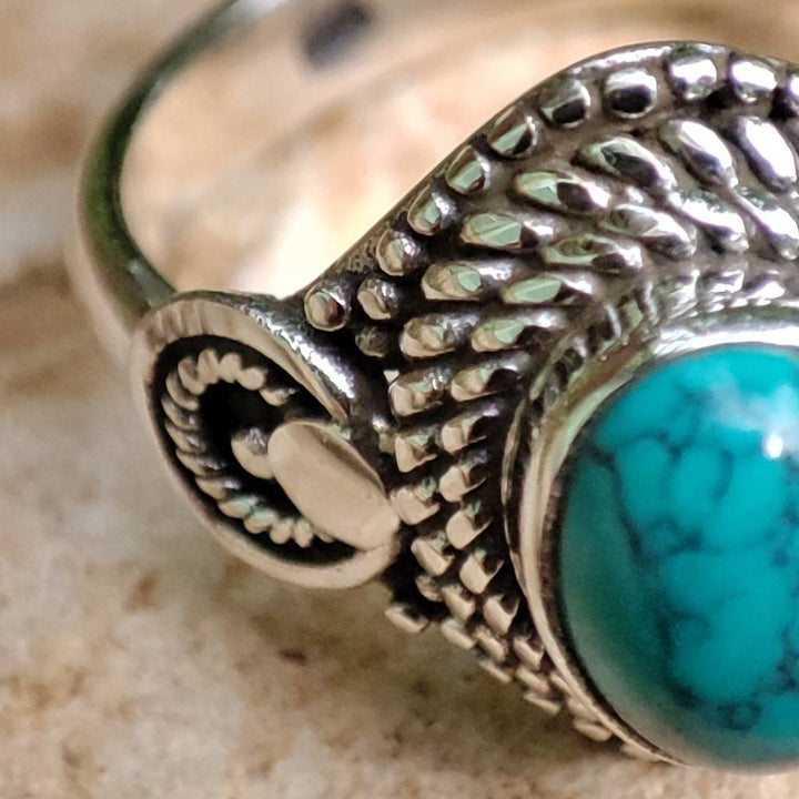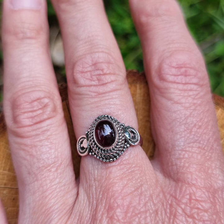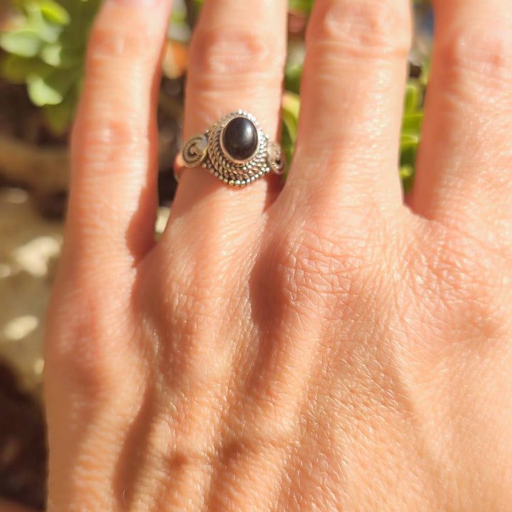 In addition to this the surface of the ring is partially burnished and the ethnic design with cabouchon stone. The ring is also made of hypoallergenic 925 silver. In fact, its surface is not treated or plated and therefore guarantees its beauty over the years.