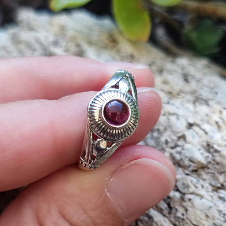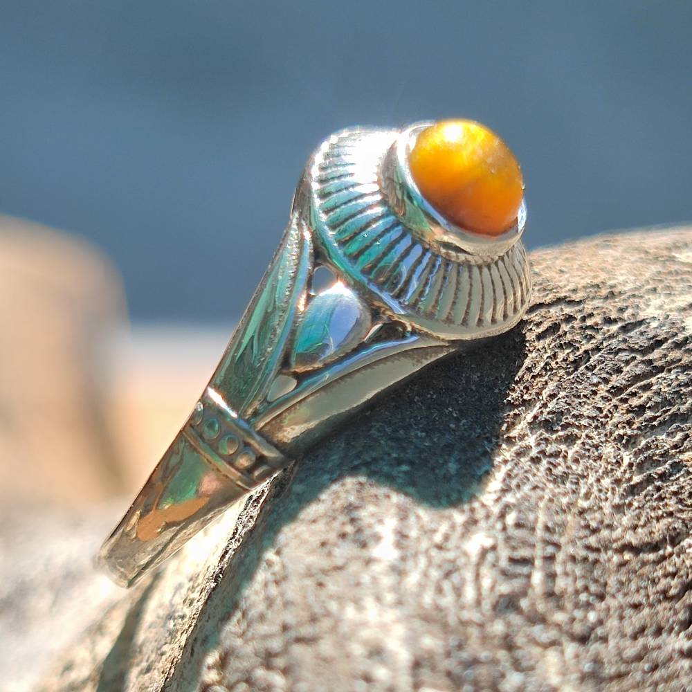 In addition to this the surface of the ring is partially burnished and the ethnic design with cabouchon stone. The ring is also made of hypoallergenic 925 silver. In fact, its surface is not treated or plated and therefore guarantees its beauty over the years.