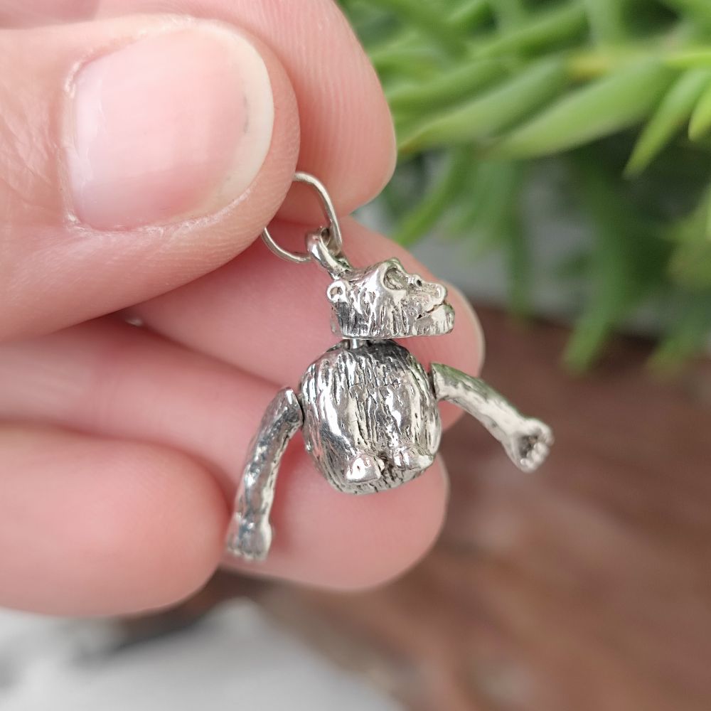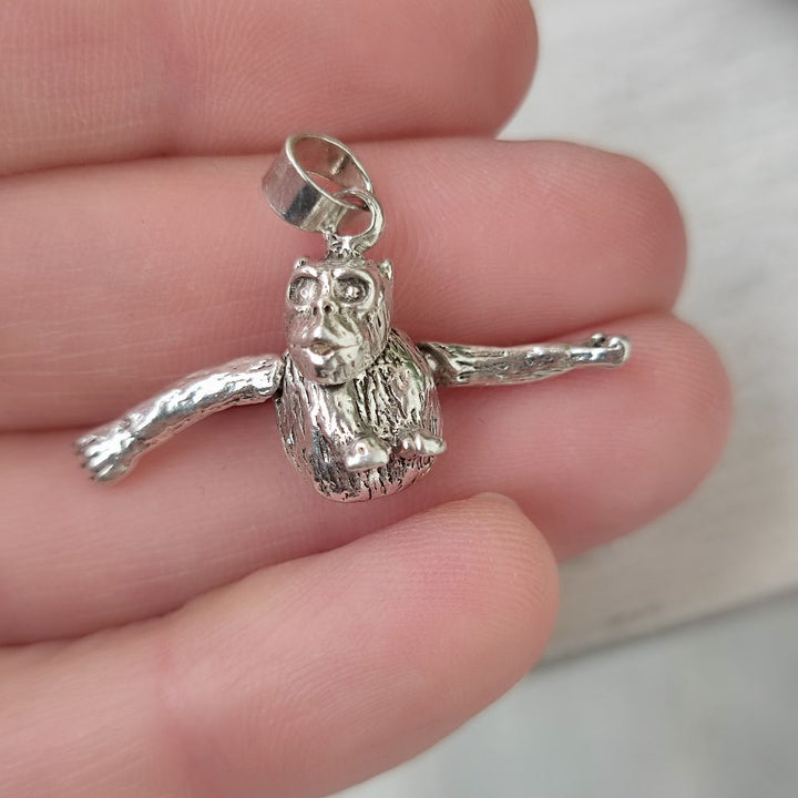 925 Silver Monkey Pendant - MONKEY. A shiny silver pendant in the shape of a faithfully reproduced little monkey. The special feature of the pendant is that the head and arms are movable and move with a slight movement.
