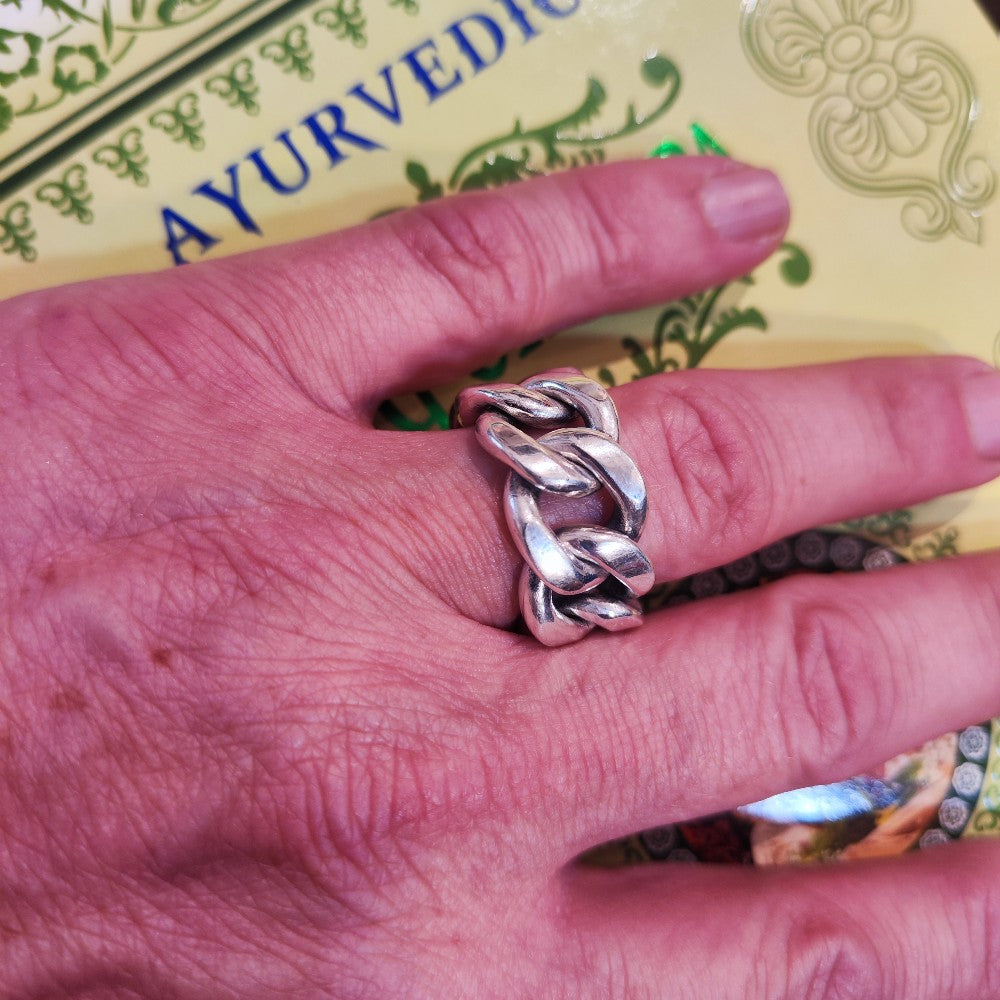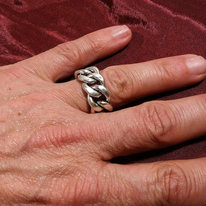 MEN'S 925 silver chain RING size 26. The groumette link for women is also handcrafted. Its surface is shiny. Linear and classic design.