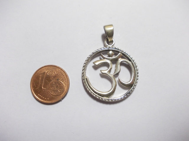 OM pendant in 925 silver. Measures approximately 2.5cm x 2.5cm.