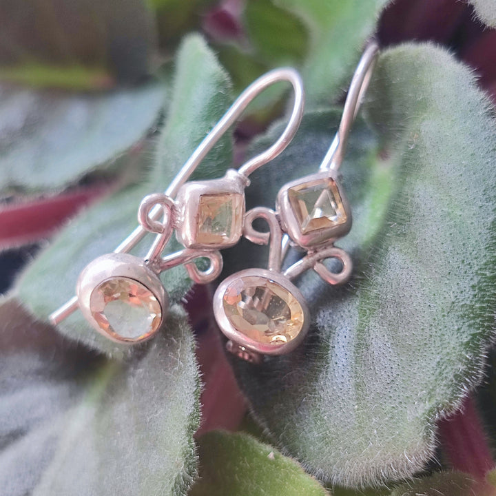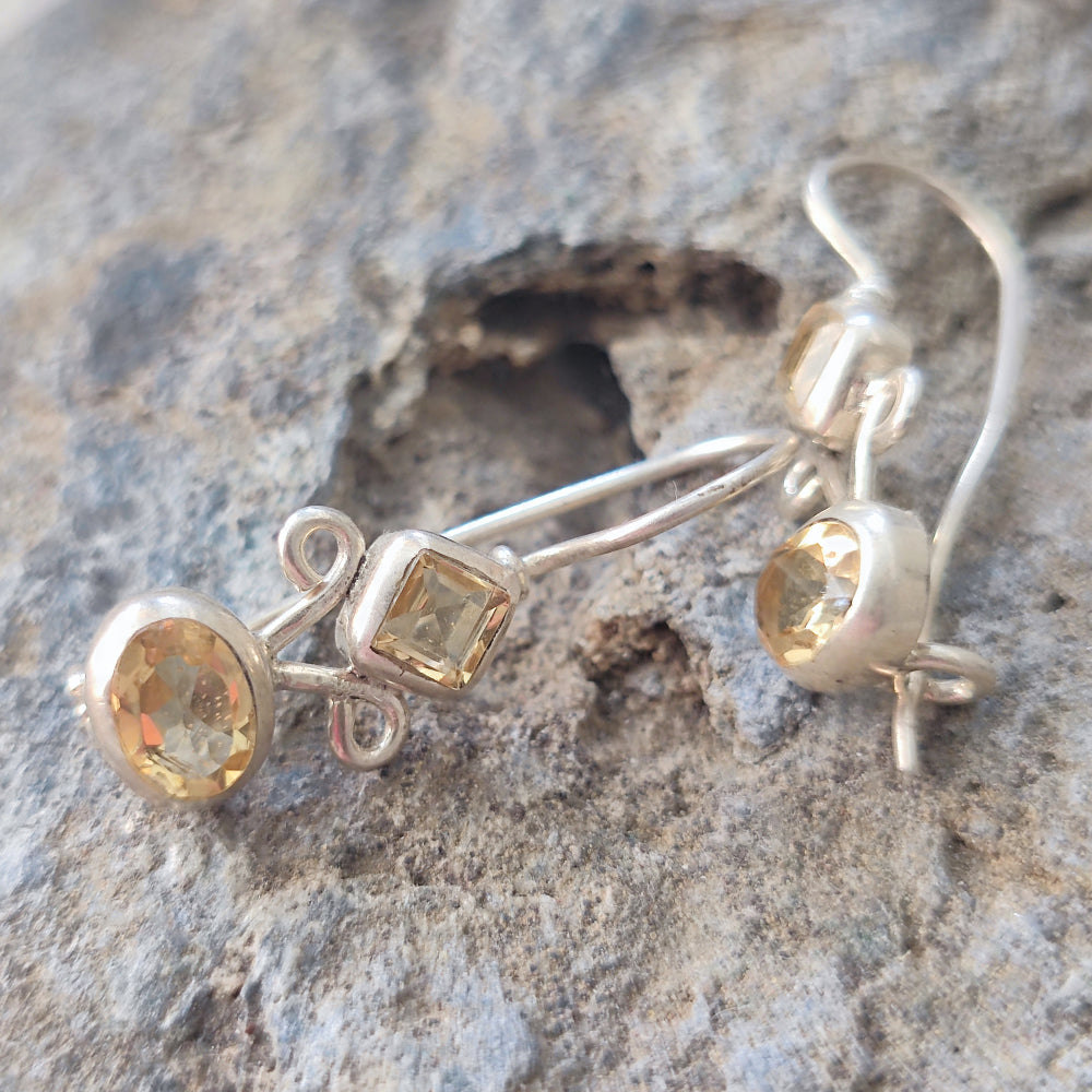 Ethnic EARRINGS with stone in 925 silver - AOHBILAM. Indian ethnic earrings with citrine quartz worked in silver. The surface is shiny, so the earring looks very bright when worn.