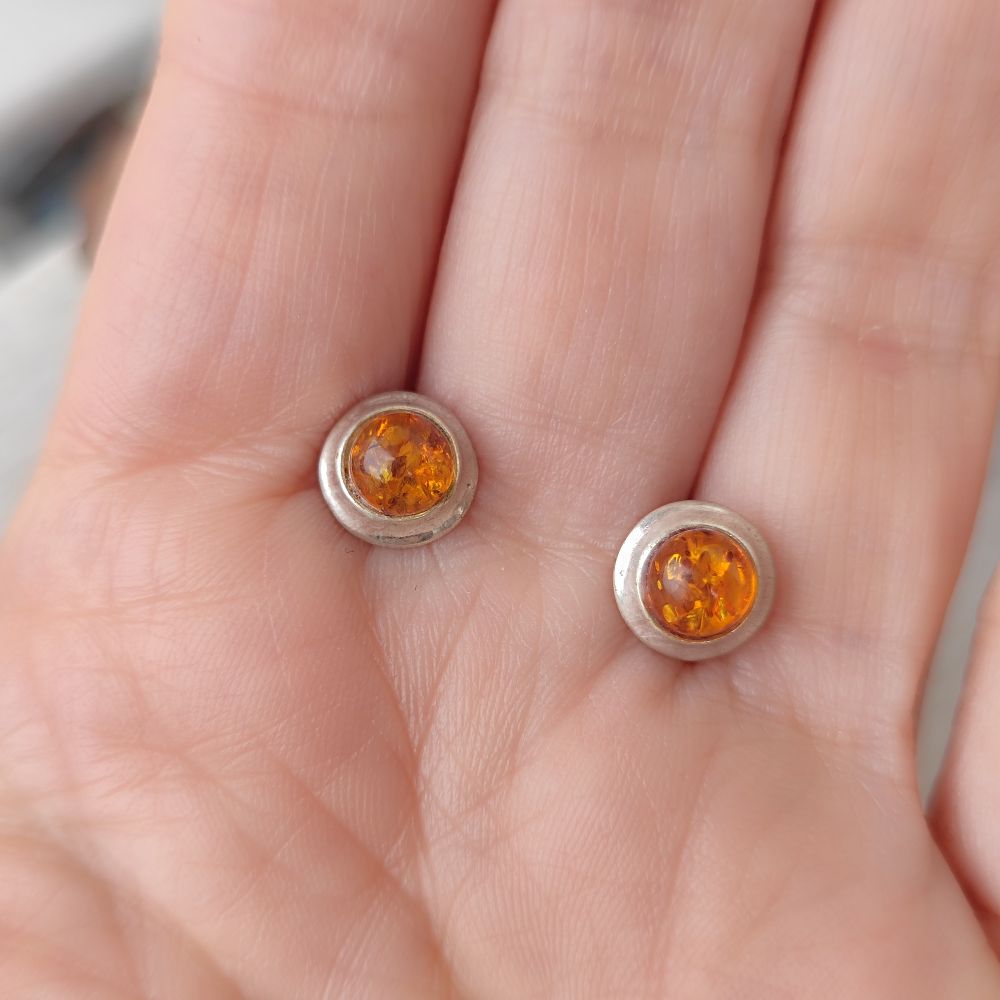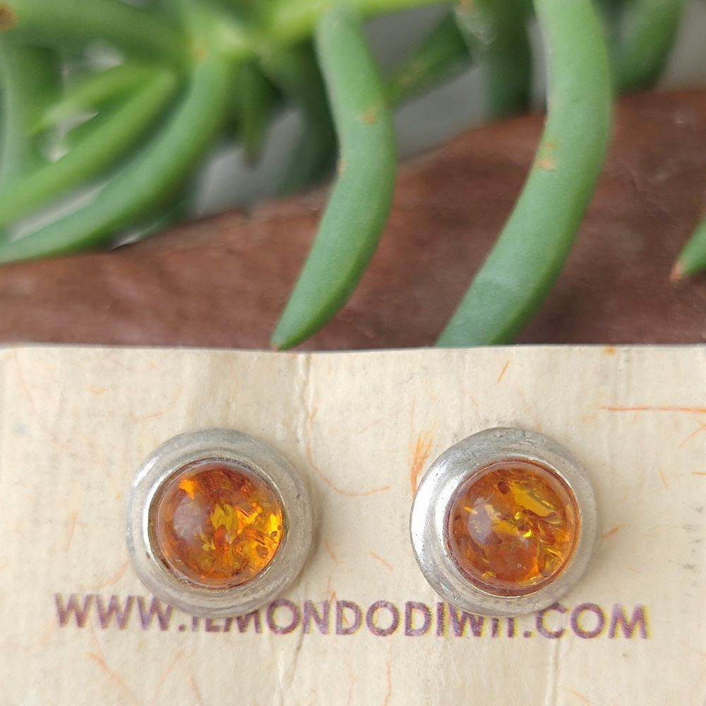EARRINGS lobe in silver with stone - BADJOD. Ethnic earrings lobe in 925 silver with Amber stone. A unique piece with an elegant and light design that gives light to your face. A pair of round, linear, classic and elegant earrings to match with every look!