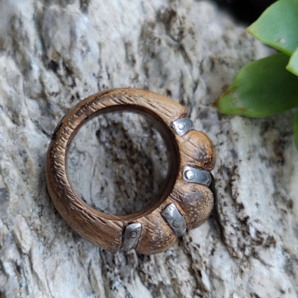 Ethnic ring in 925 silver and wood - SAWARDE