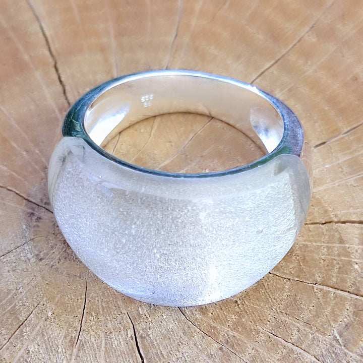 The ring is finally made of hypoallergenic 925 silver. Its surface is not treated or plated therefore it guarantees its beauty over the years.
