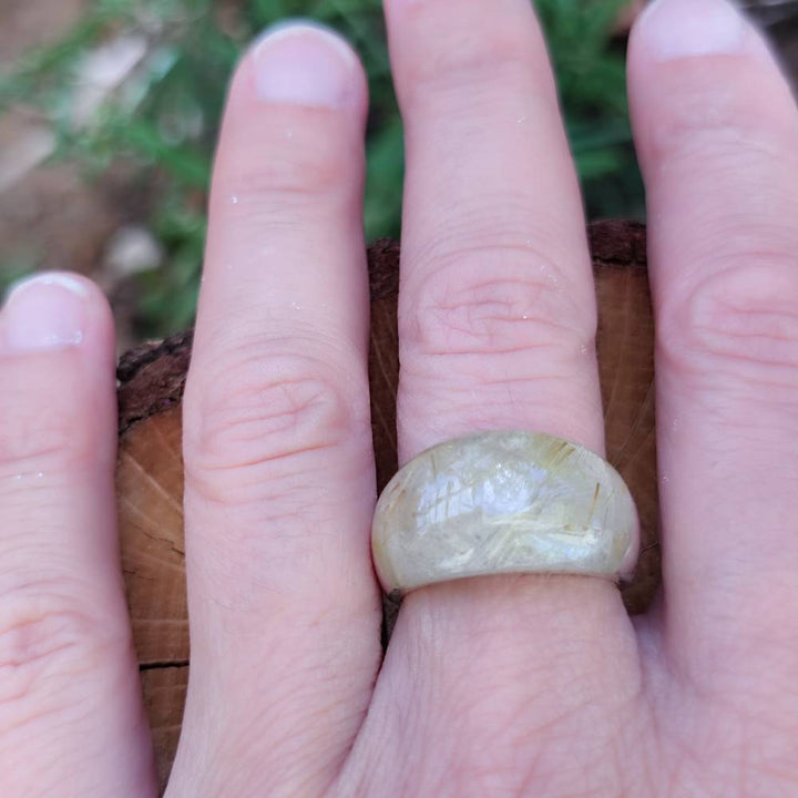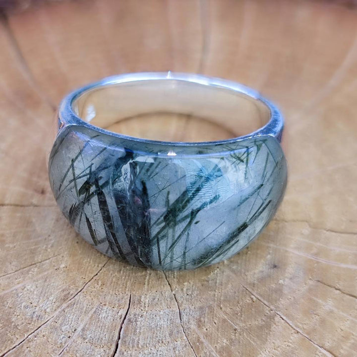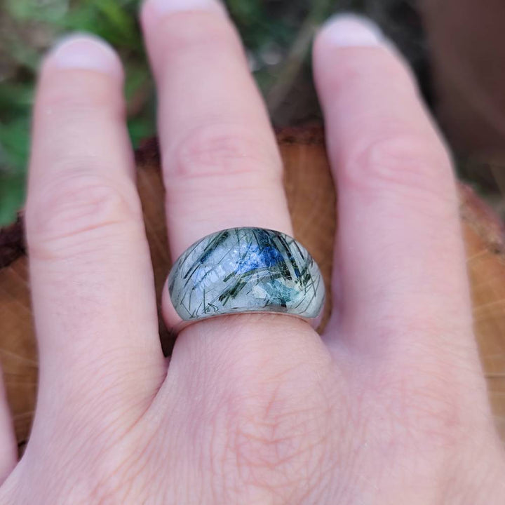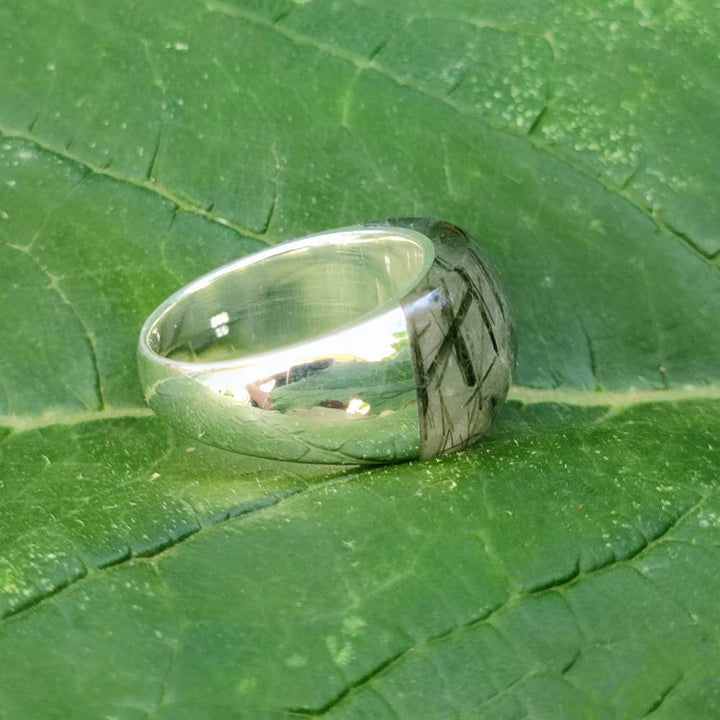 Handcrafted ring in 925 silver with stone - THEKKADY. 925 silver band ring with stone made in solid handcrafted design and very bright when worn. The stones available are rock crystal, labradorite and rutilated quartz in two different shades.