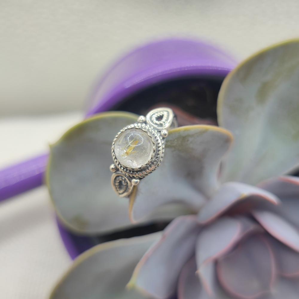 Ethnic 925 silver ring with stone - ALWAL. Let yourself be captivated by the authentic charm of our polished 925 silver ring with a rutilated quartz stone and traditional decoration . It's the perfect piece for those seeking elegance, originality, and a touch of magic for everyday wear.