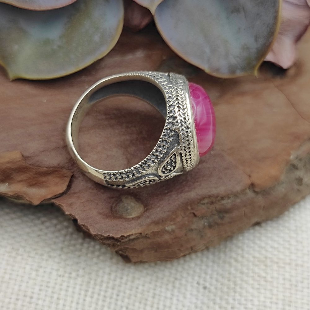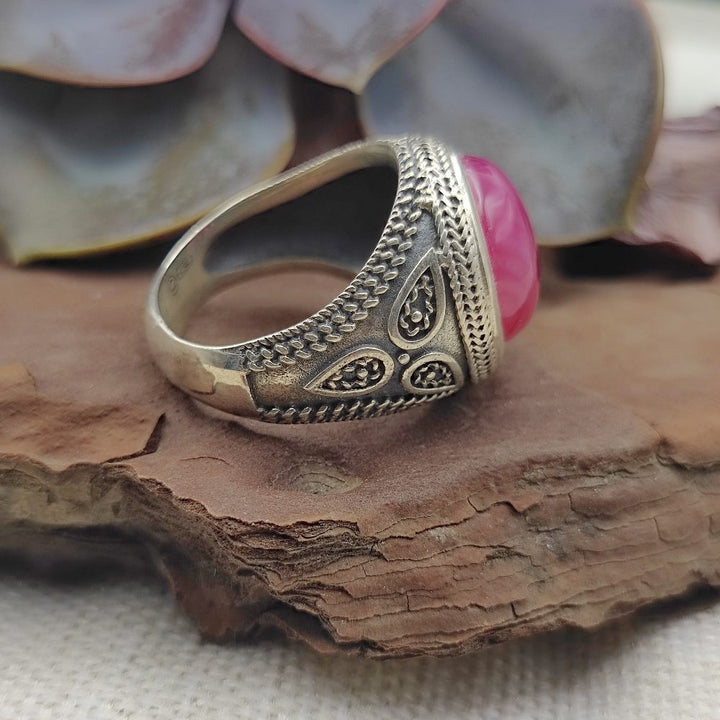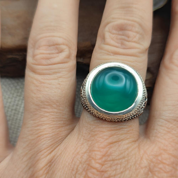 Ethnic 925 silver ring with stone - BIMHPUR. Discover the authentic charm of our high-end ethnic ring in 925 silver , a handcrafted piece available with a ruby root stone or green agate . Handcrafted, this ring combines the strength of solid silver with the beauty of natural stones, offering a unique style full of personality.