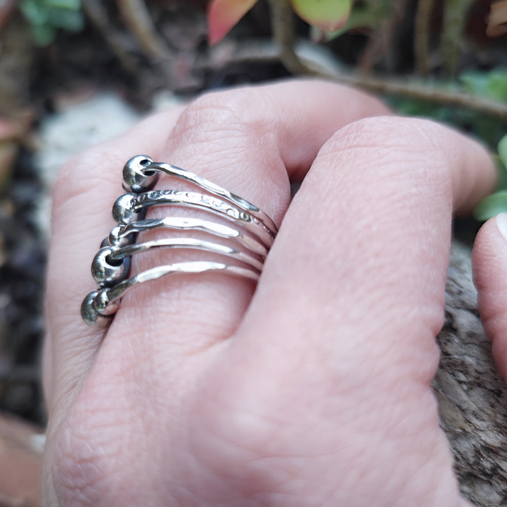 This handcrafted silver ring is a unique and captivating piece of jewelry. This ring is meticulously crafted by expert silversmiths using traditional techniques to create a distinctive and detailed design. The perfect ring for any look!
