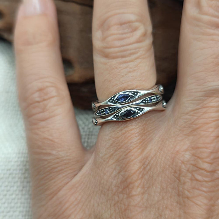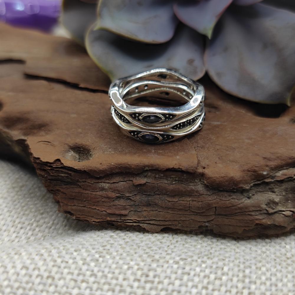 Triple ring in 925 silver with stone - DUMARYA. Discover the timeless elegance of this iolite silver ring, composed of three rings in a unique and sophisticated design.
