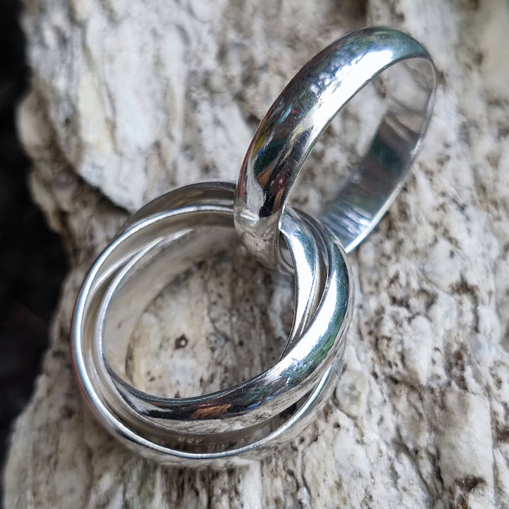 925 silver band ring - RAJAGAPUR. An enveloping and eye-catching high-band ring made up of four smooth rings in the shape of a classic wedding ring. An ideal ring for men and women, original and elegant, suitable for all your outfits!