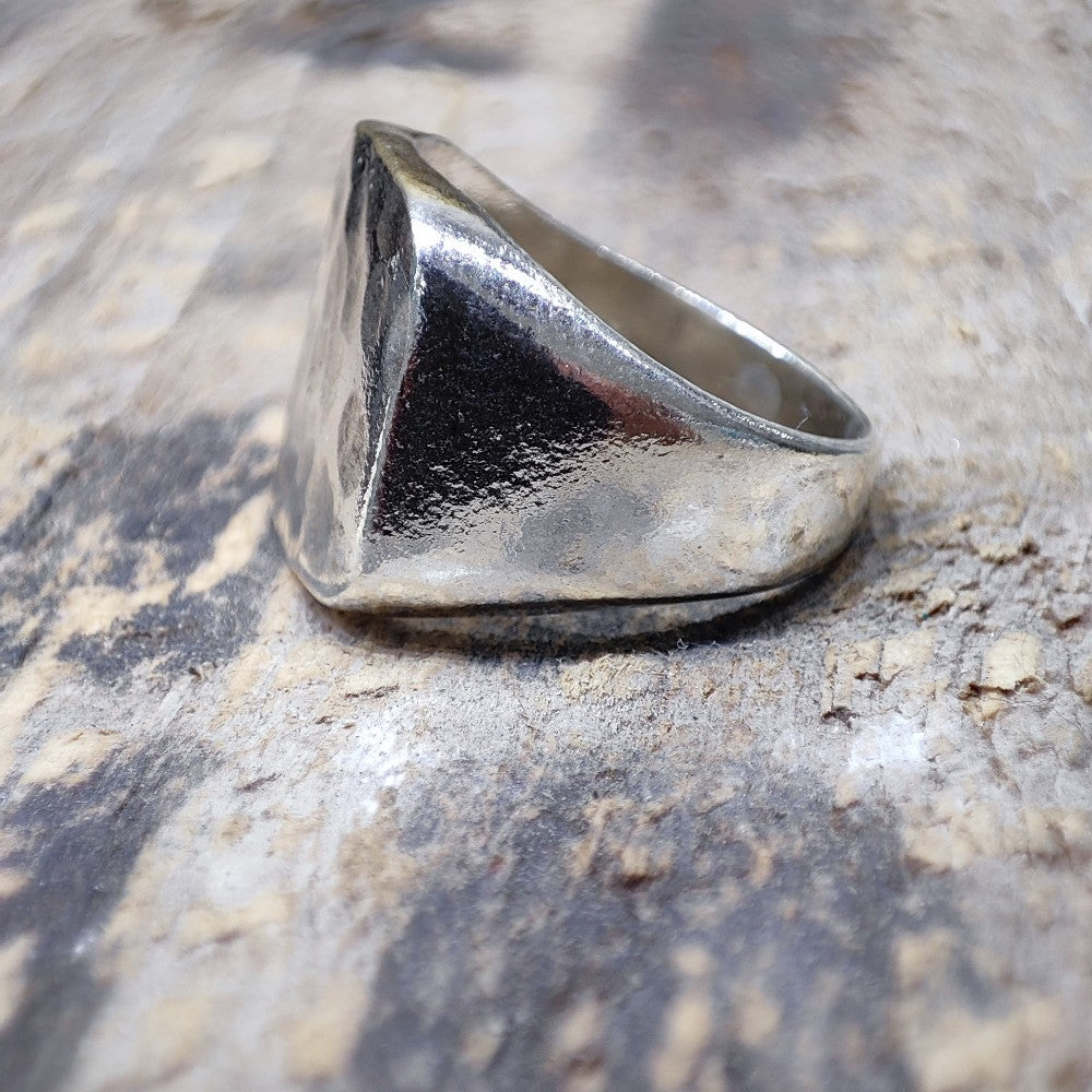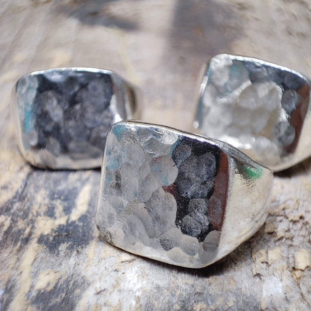 CHEVALIER pinky ring 925 silver hammered - LION. A unique and original ring since each piece is hammered individually by hand. For this reason the appearance varies from ring to ring and thus makes it a unique piece as you can see in the photo below.