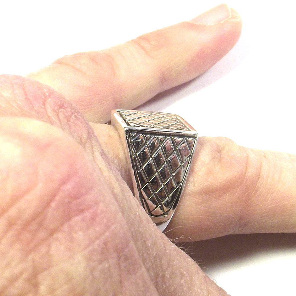Square chevalier type pinky ring in 925 silver.