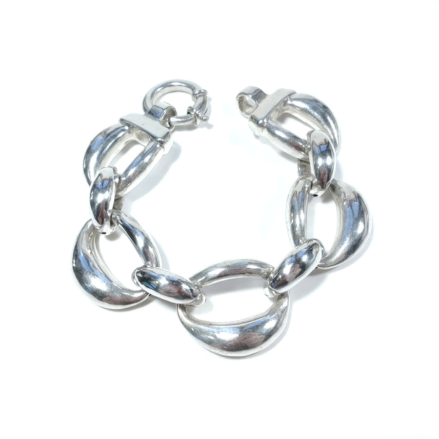 Soft bracelet made of 925 silver. Its surface is shiny.