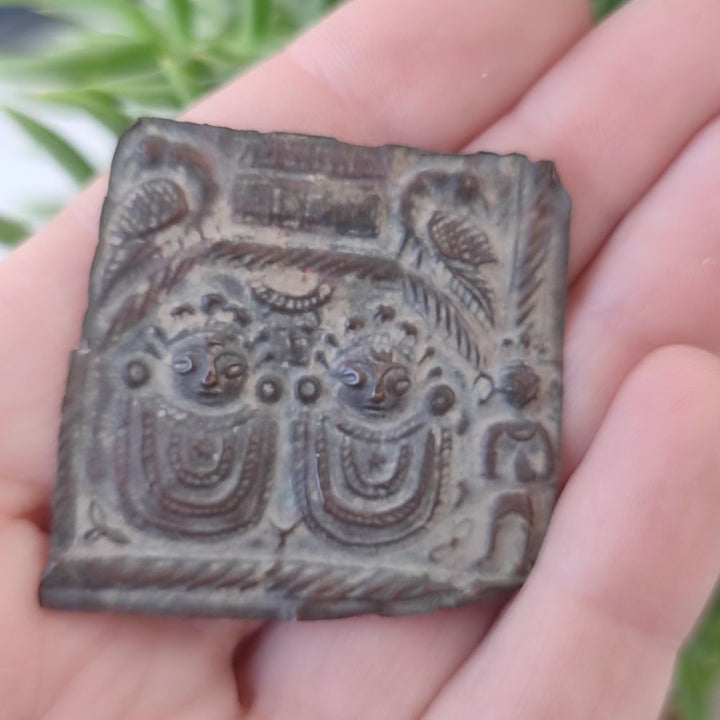 Discover all the specifications of this antique copper votive icon - RADHA and KRISHNA!