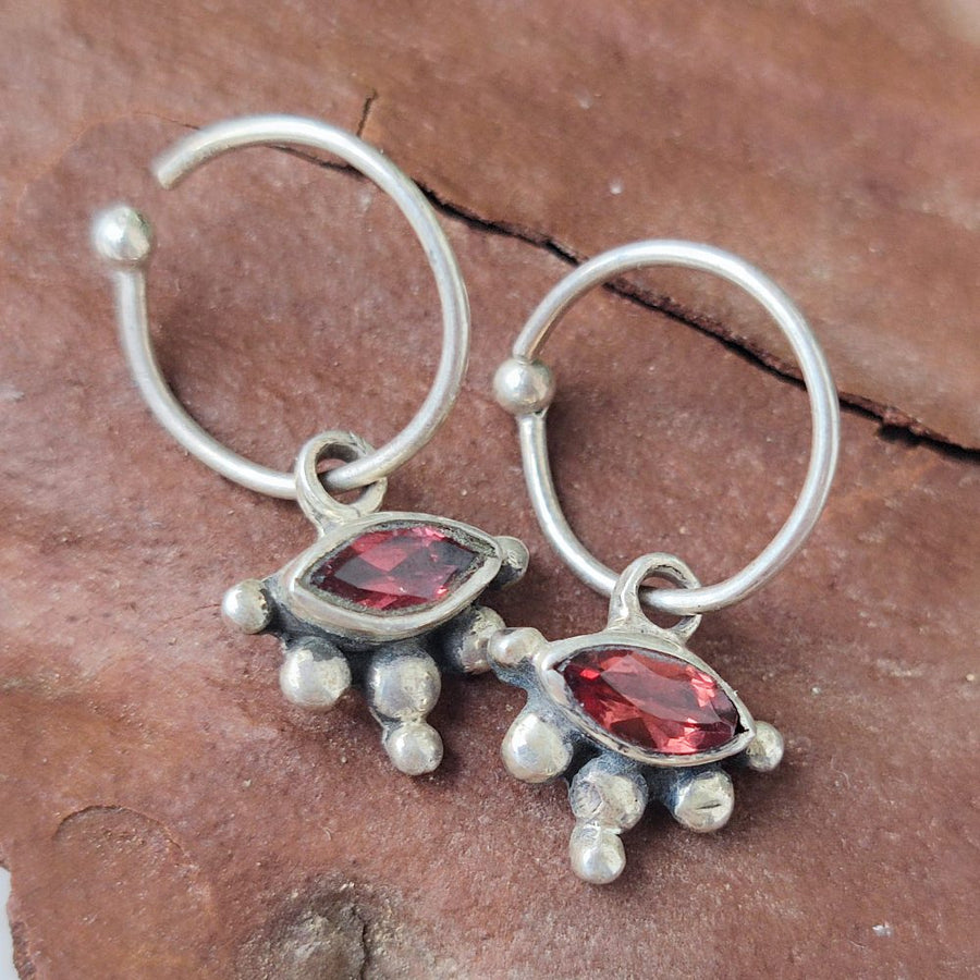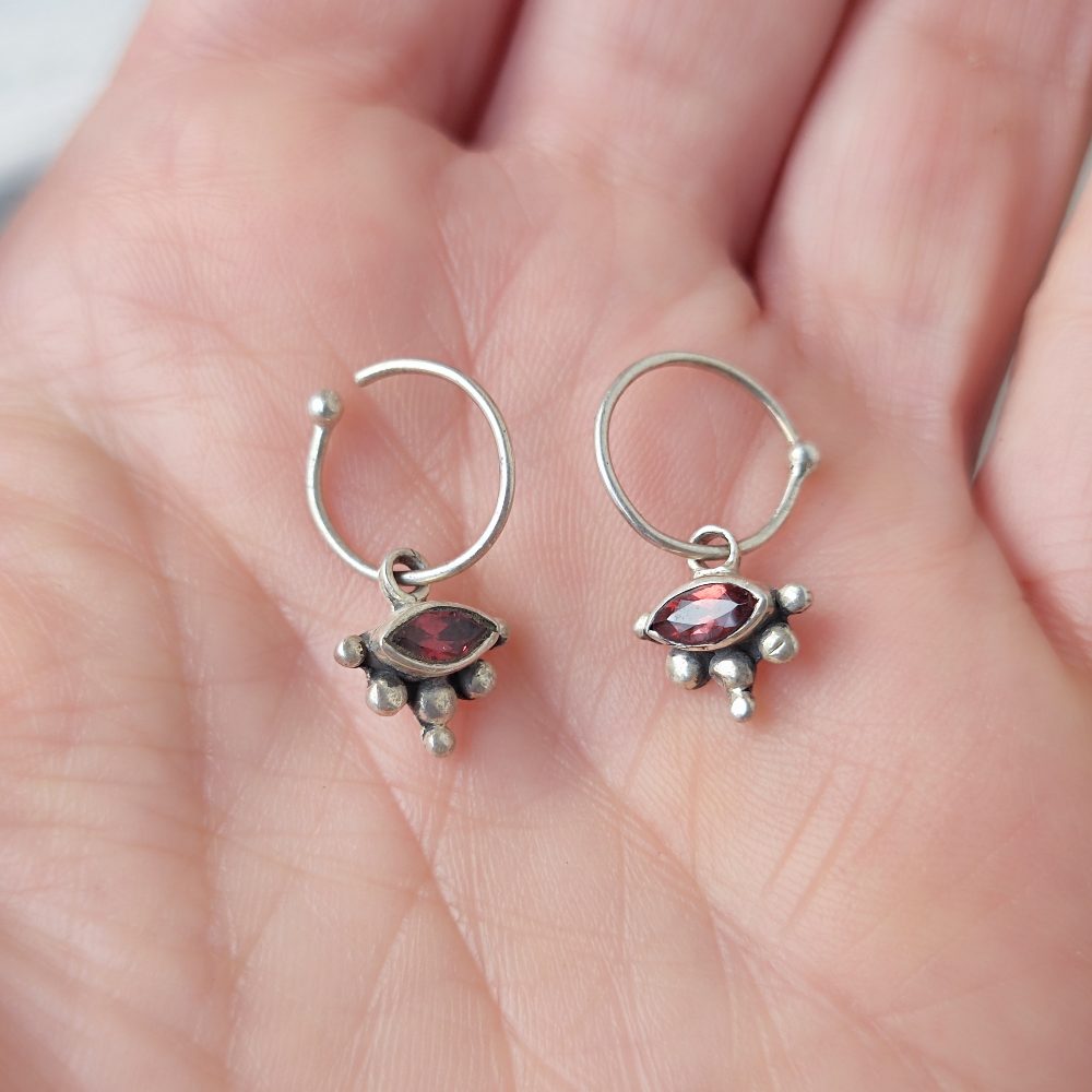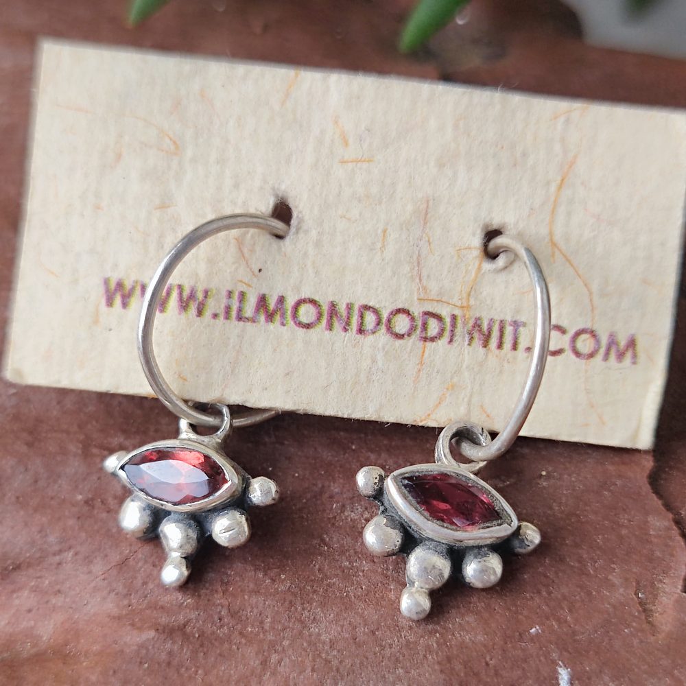 SILVER STUD EARRINGS with stone - CHAIPARA. Hoop earrings crafted in silver and decorated with a stone of GARNET . The earrings are bright and create a classic, light and elegant jewel, ideal to complete your look.