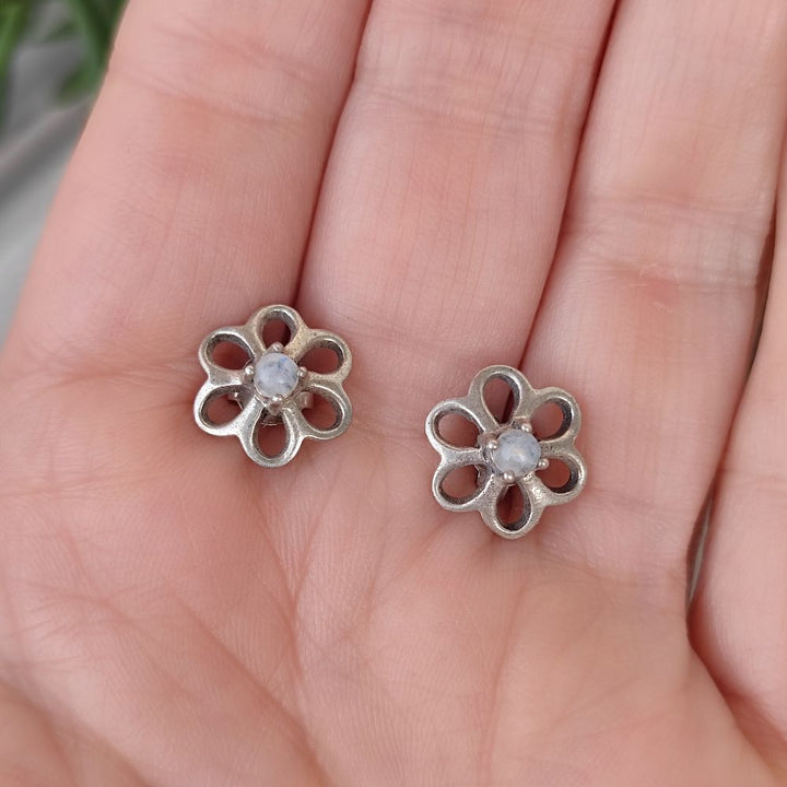 Ethnic EARRINGS with stone in 925 silver - GHUMA. Ethnic Indian earrings with stone worked in silver. Very bright lobe earrings with MOONSTONE . The earrings have a particular workmanship in the shape of a small flower.