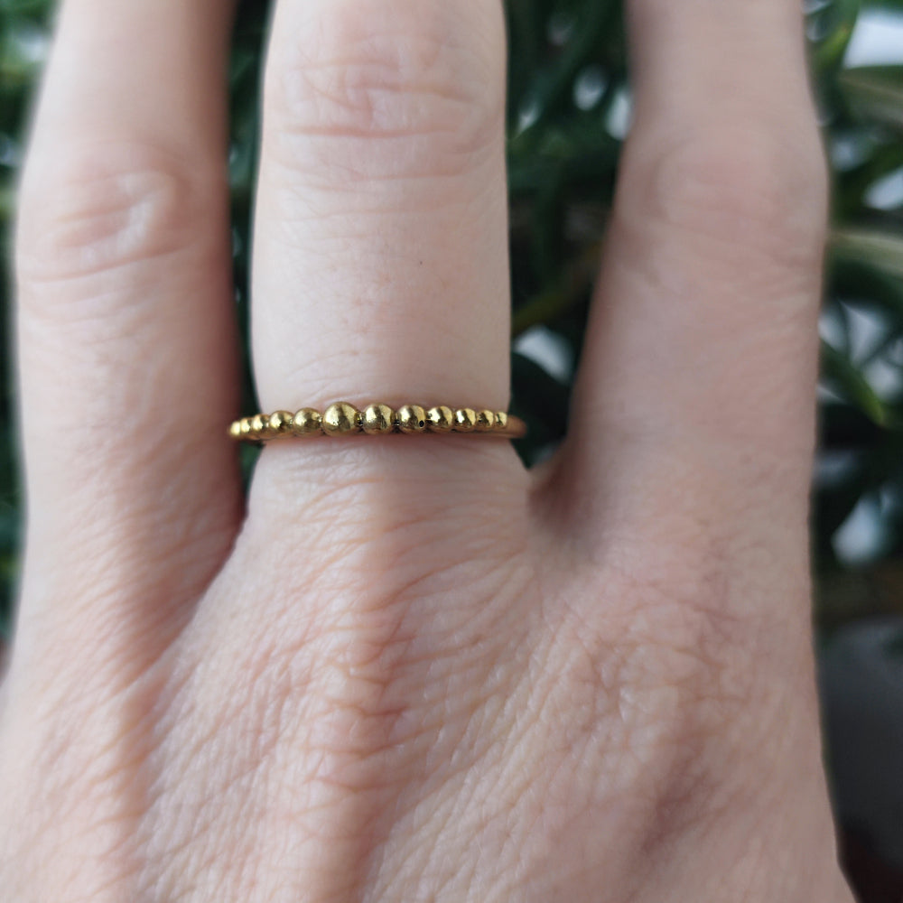 Ethnic handcrafted brass RING - NERLA. An Indian brass jewel with a light construction that guarantees a comfortable experience of a handcrafted jewel. Thin band ring with dotted decoration typical of Indian crafts and jewelry. A simple and bright ring ideal for casual or elegant looks.
