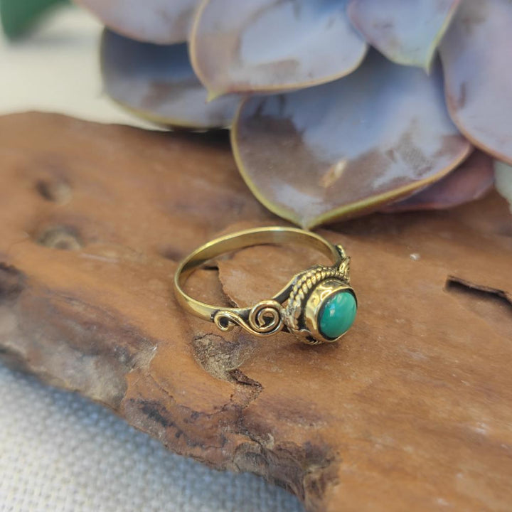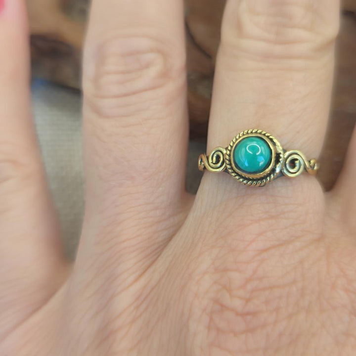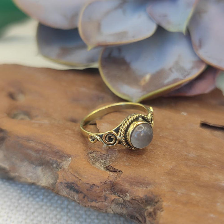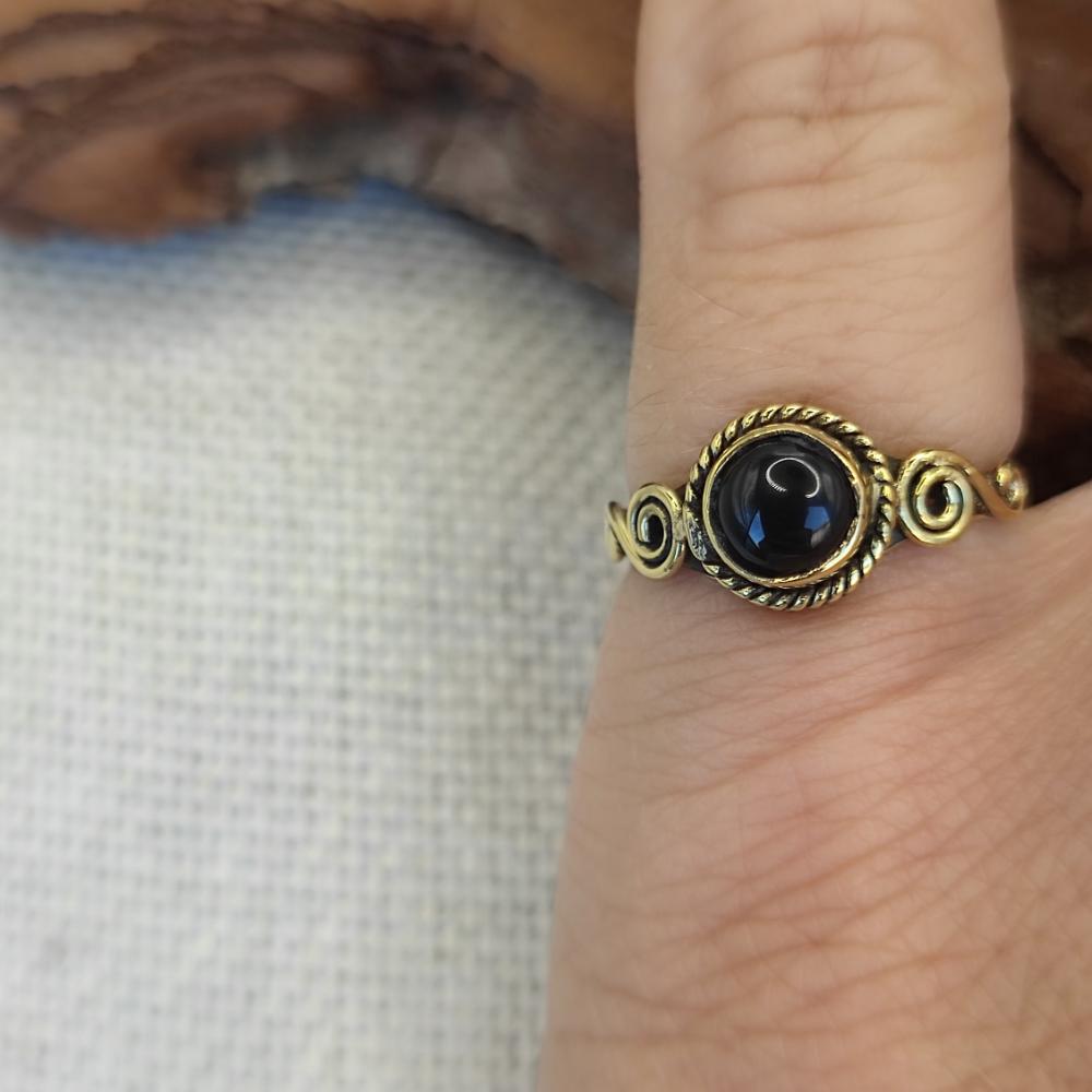 Ethnic brass ring with stone - KATRAS