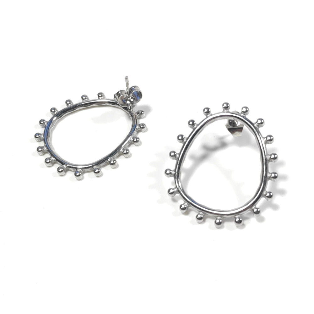 Steel colored 925 silver earrings. Circle shaped earrings adherent to the lobe. The lightweight construction ensures a comfortable experience. Modern and linear design in "minimalist" style. Shape: Circle