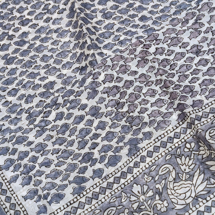 UDAY Fish Pareo in cotton made with designs made with handcrafted wooden stamps. Typical and traditional Indian workmanship.