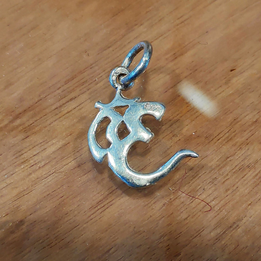 OM pendant in 925 silver. Measures approximately 1.5cm x 1.5cm x 2mm. The brushed surface is matte.