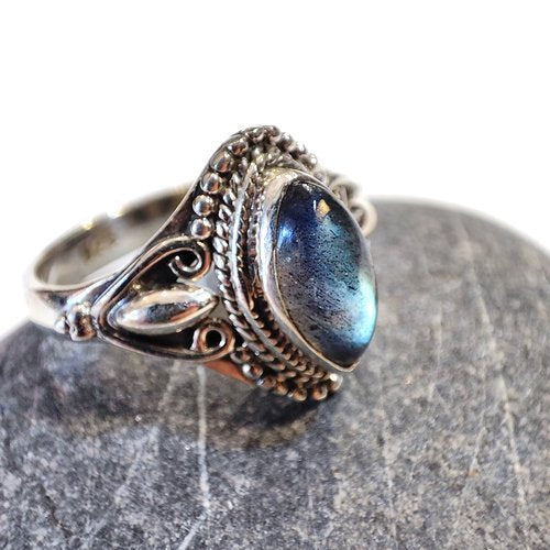 Iolite Anello etnica MANTRA in argento 925 ANELLO artigianale con pietra | GIOIELLI etnici